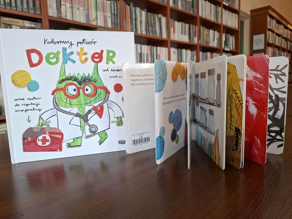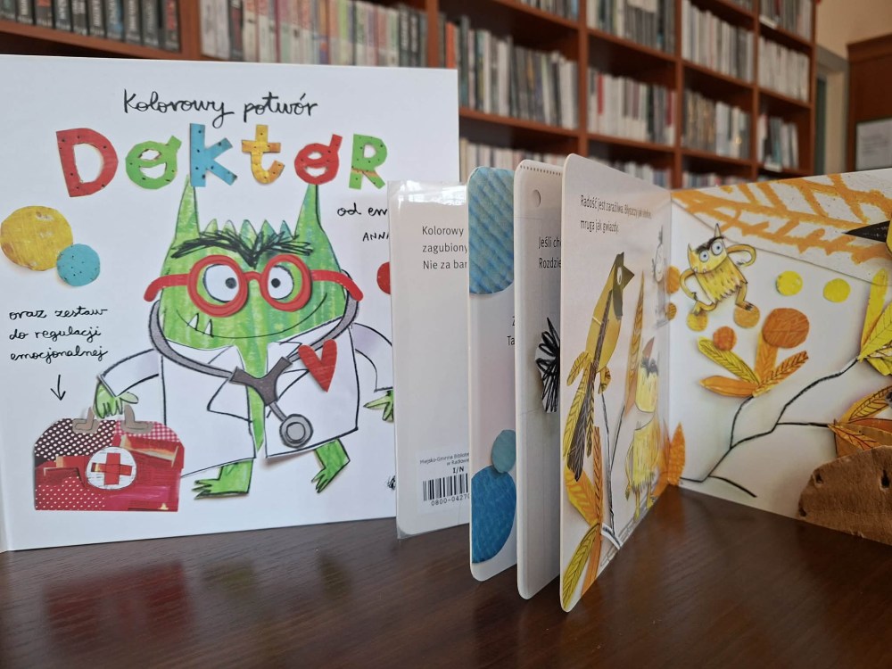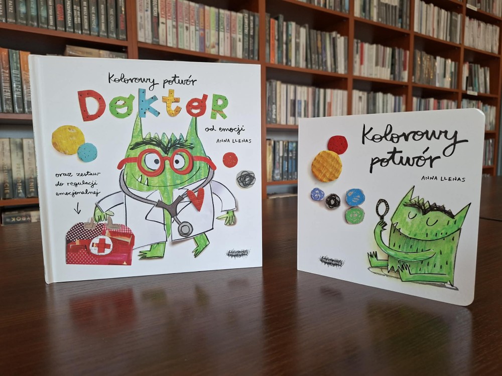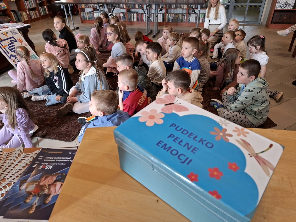 W drugiej części spotkania dzieci poznały „Kolorowego potwora”- bohatera książeczki o tym właśnie tytule. Kolorowy potwór miał problem z emocjami, nie wiedział jak sobie z nimi poradzić. Wraz z bohaterem na poszczególnych stronach przedszkolaki dowiedziały się, co zrobić by opanować emocje. Po przeczytanej lekturze dzieci stworzyły własne „Pudełko pełne emocji”, w którym umieściły narysowane przez siebie plakietki, wyrażające różne uczucia.