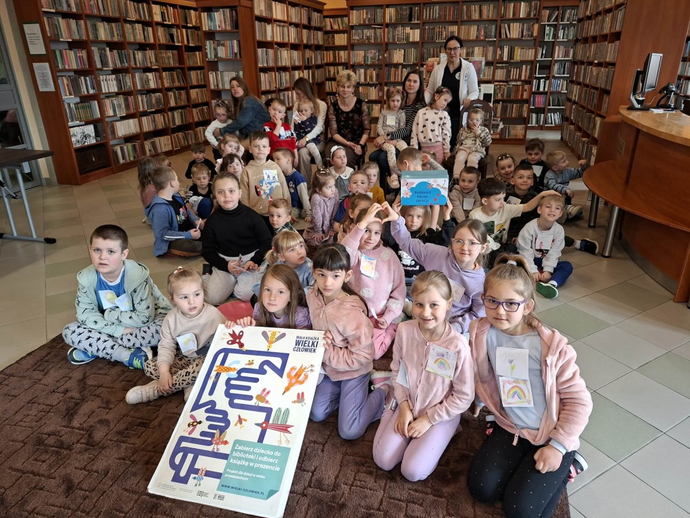 Przedszkolaki zapoznały się z naszą książnicą, dowiedziały się jak dołączyć do akcji „Mała książka – wielki człowiek”. Duża część z nich należy już do grona naszych czytelników, z czego bardzo się cieszymy. Dzieci wiedziały jak należy obchodzić się z książkami, chętnie udzielały odpowiedzi, pochwaliły się także swoimi ulubionymi książkowymi bohaterami.