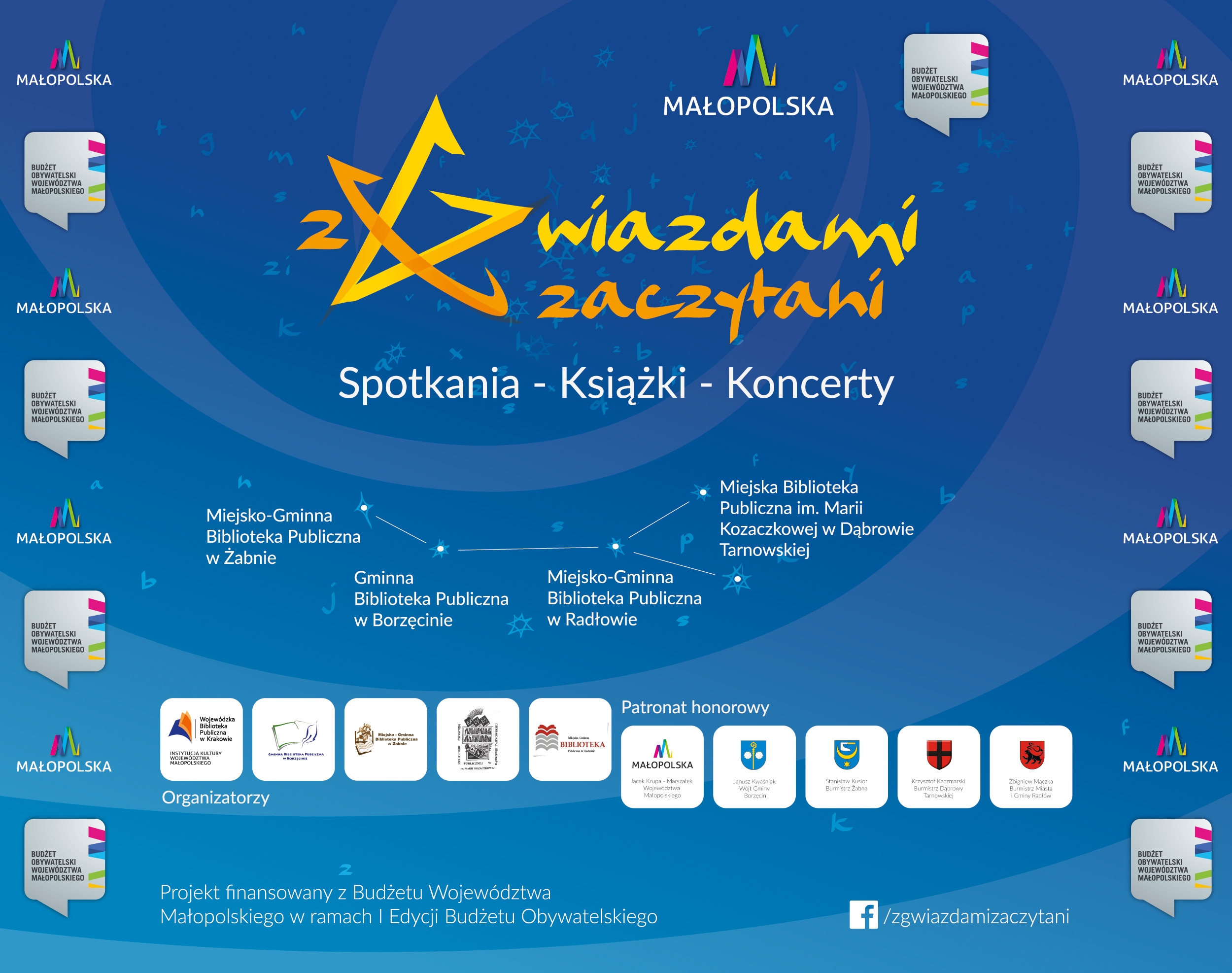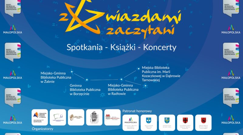Wojewódzka Biblioteka Publiczna w Krakowie wraz z Gminną Biblioteką Publiczną w Borzęcinie, Miejską Biblioteką Publiczną im. Marii Kozaczkowej w Dąbrowie Tarnowskiej, Miejsko-Gminną Biblioteką Publiczną w Radłowie oraz Miejsko-Gminną Biblioteką Publiczną w Żabnie przystępuje do realizacji projektu „Z gwiazdami zaczytani” w ramach I Edycji Budżetu Obywatelskiego Województwa Małopolskiego.