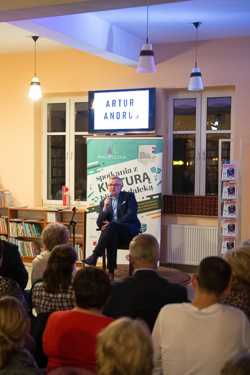 W siedzibie radłowskiej biblioteki odbyło się spotkanie ze znanym i cenionym artystą – Arturem Andrusem. Gość, w sposób interesujący i humorystyczny, opowiadał o swojej działalności, kontaktach z innymi artystami i planach na przyszłość. Spotkanie było też okazją do promocji interesującej książki, tematycznie związanej z artystami: Marią Czubaszek i Wojciechem Karolakiem. Licznie zgromadzona publiczność miała okazję nie tylko do bezpośredniego kontaktu z artystą, ale też zadawania licznych pytań. Całość, półtoragodzinnego autorskiego wieczoru, okraszona została przez A. Andrusa wysmakowanym humorem i licznymi, zabawnymi anegdotami.