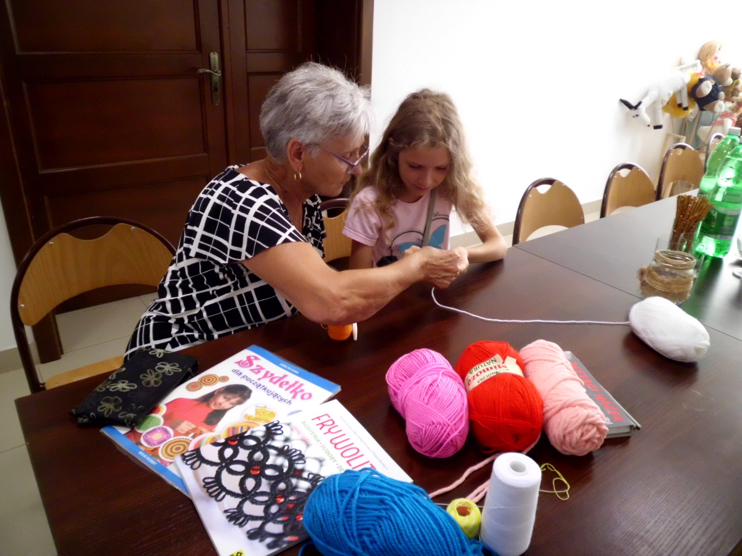 Szydełkowanie to sposób na kreatywne spędzenie wolego czasu, a zarazem pozytywnie wpływa na rozwój młodego człowieka i stymuluje zdolności manualne. Nie potrzeba wiele aby zacząć robótki ręczne – wystarczy szydełko i sznurek! U Kingi, która chętnie rozpoczęła przygodę z szydełkowaniem widać efekty. Serdecznie zapraszamy inne osoby do udziału w warsztatach.