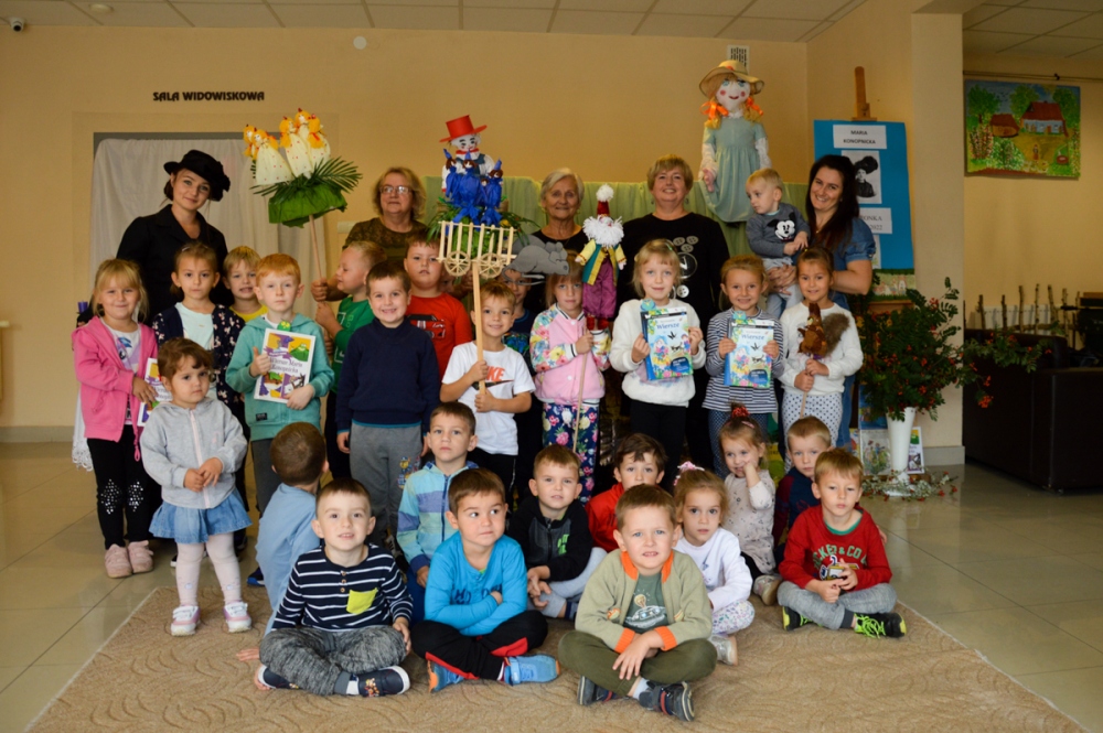 Działanie projektowe obejmowało spotkanie z przedszkolakami dotyczące twórczości Marii Konopnickiej. Z tej okazji teatrzyk kukiełkowy „Gąska”, działający przy Kole Gospodyń Wiejskich, zaprezentował przedstawienie, którego scenariusz opracowano w oparciu o książkę Marii Konopnickiej „Na jagody”. Oprócz przedstawienia, przedszkolakom czytano wiersze Konopnickiej, a później zaproszono dzieci do zabaw ruchowych. Niespodzianką przygotowaną przez panie z Koła Gospodyń Wiejskich były jagody, babeczki i herbata z sokiem malinowym. Na pamiątkę spotkania przedszkolakom przekazano cztery egzemplarze wierszy Marii Konopnickiej.