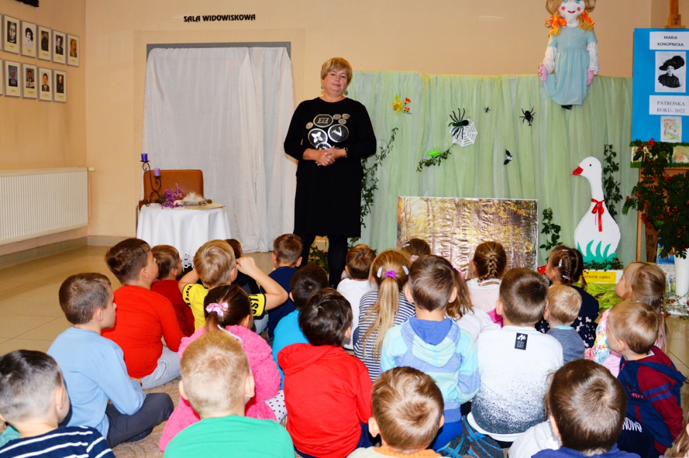 Biblioteka Biskupice Radłowskie. O Konopnickiej z teatrzykiem Gąska