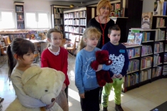 Naszą bibliotekę odwiedzili uczniowie klasy pierwszej z wychowawczynią Panią Elżbietą Miś. Każde dziecko przybyło w towarzystwie swojego ulubionego misia. Na początku dzieci poznały historię tej wyjątkowej pluszowej zabawki.