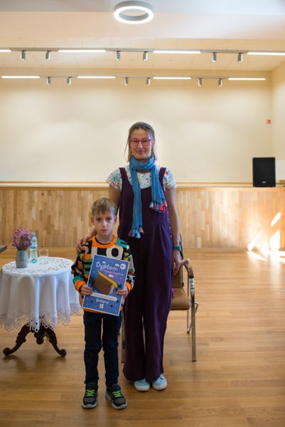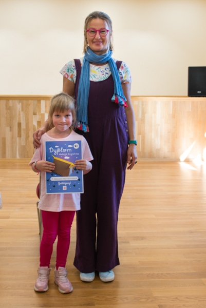 Spotkanie było też okazją do wyróżnienia najlepszych czytelników. Dyplom Małego Czytelnika osobiście wręczyła pisarka Aleksandrze Marcinkowskiej i Mikołajowi Marcinkowskiemu.