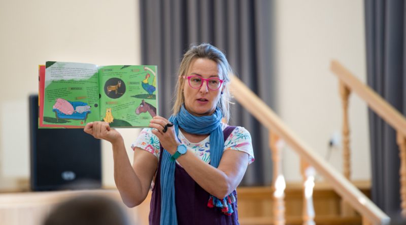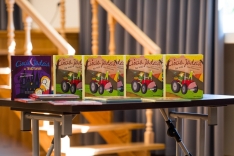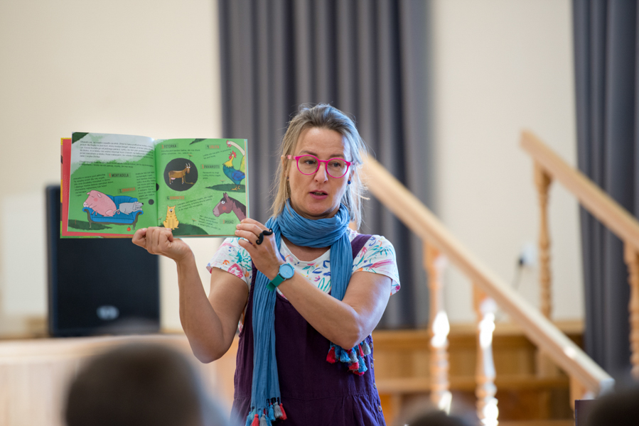 Pisarka zajmująco poprowadziła spotkanie. Prezentowała własne książki, czytała ich fragmenty, a później opowiadała o głównych bohaterach swoich książek, m.in. zwariowanej Cioci Jadzi. Opowiadała też o Brazylii – kraju w którym obecnie mieszka.