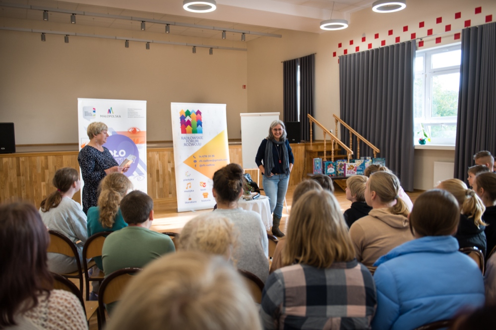 Uczniowie z Niepublicznej Szkoły Podstawowej w Biskupicach Radłowskich wraz z wychowawcami spotkali się z dr Roksaną Jędrzejewską-Wróbel – znaną i cenioną autorką książek dla dzieci i młodzieży.
