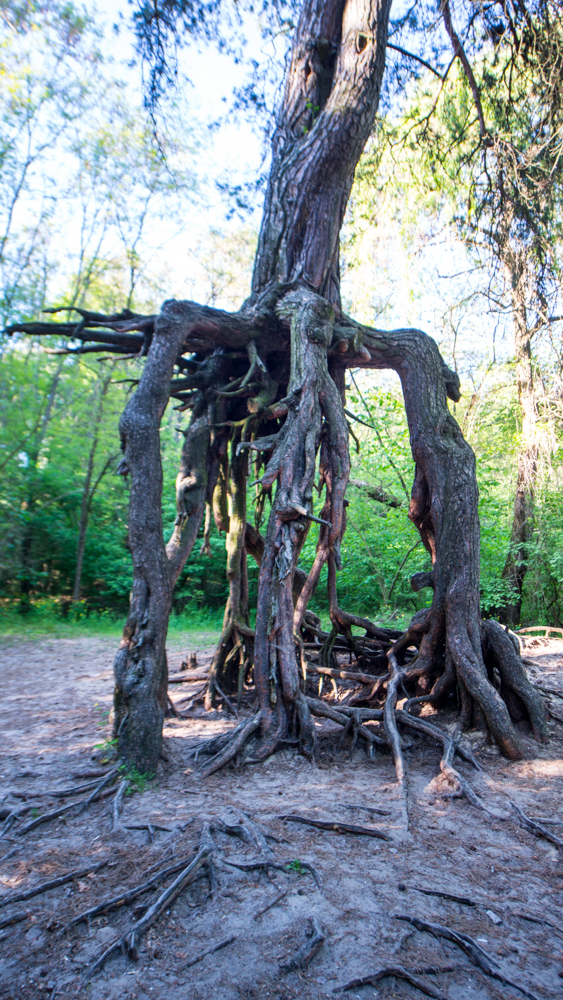 W pobliżu znanego kurortu Busko-Zdrój, w miejscowości Wełecz na skraju lasu, rośnie od prawie stu lat oryginalna i unikatowa sosna. Jej naziemne korzenie wprawiają w zdumienie i niedowierzanie, że potrafią udźwignąć masywne drzewo (obwód pnia 200 cm). System korzenny odkrywany był wskutek wydobywania piasku przez miejscową ludność. Pomimo ingerencji człowieka, drzewo zachowało żywotność i nietypowy szczudlasty wygląd.