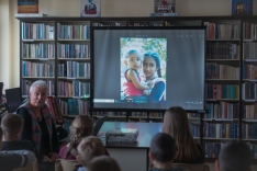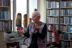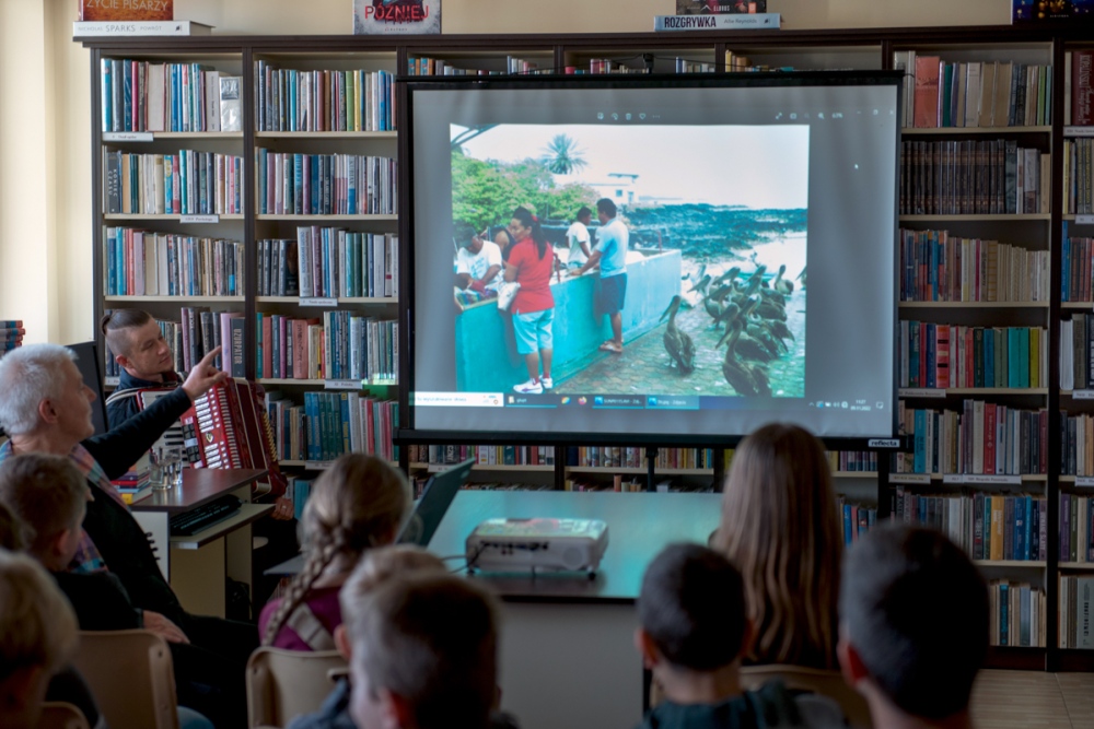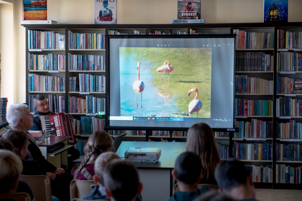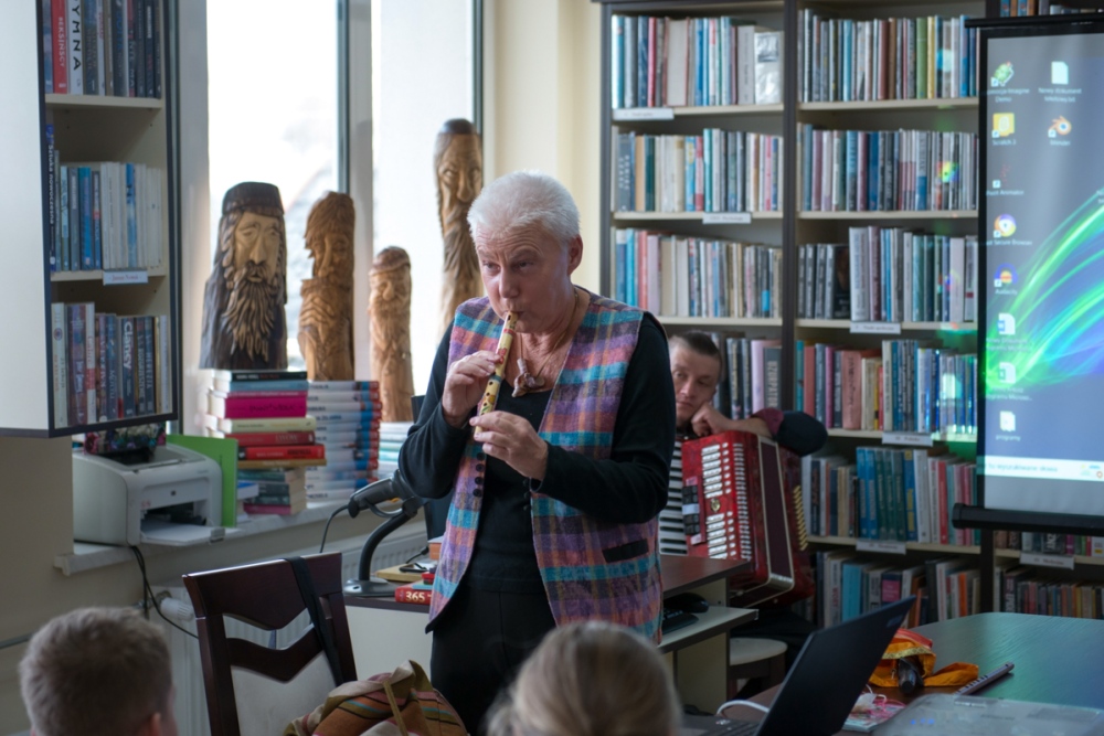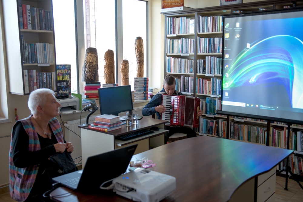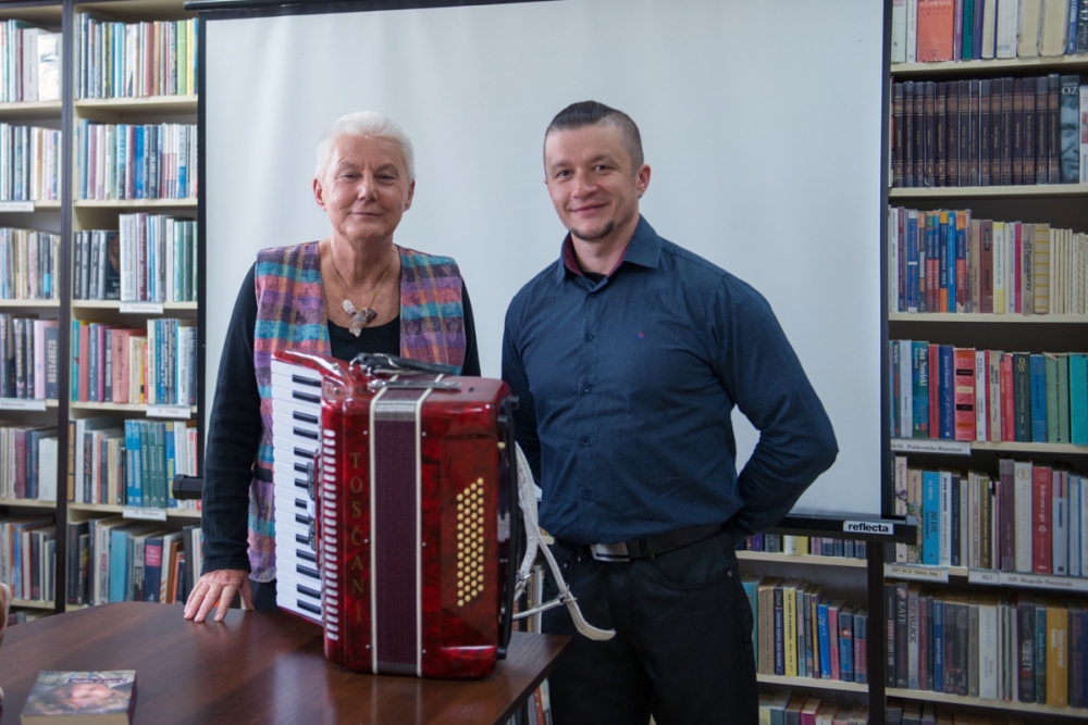 Spotkaniu towarzyszyła muzyka w wykonaniu Grzegorza Szary – lokalnego muzyka (akordeonisty), blogera i kabareciarza.