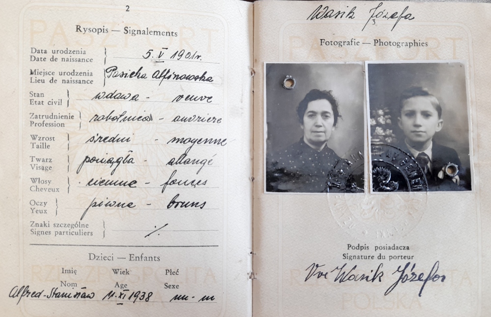 Na zdj. (1). Rodzinny paszport wydany we Francji. Na fotografiach: ojciec p. Stanisława – Alfred Wasik ur. we Francji i babcia Józefa Wasik z d. Nawrot, przebywająca wówczas na emigracji zarobkowej.