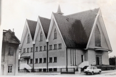 Na zdj. (2). Kościół w Przybysławicach, w roku poświecenia świątyni (7 października 1984 r.). Po lewej stronie zdj., fragment nieistniejącej już strażnicy z syreną alarmową. Przed kościołem zaparkowany sam. produkcji enerdowskiej marki Wartburg.