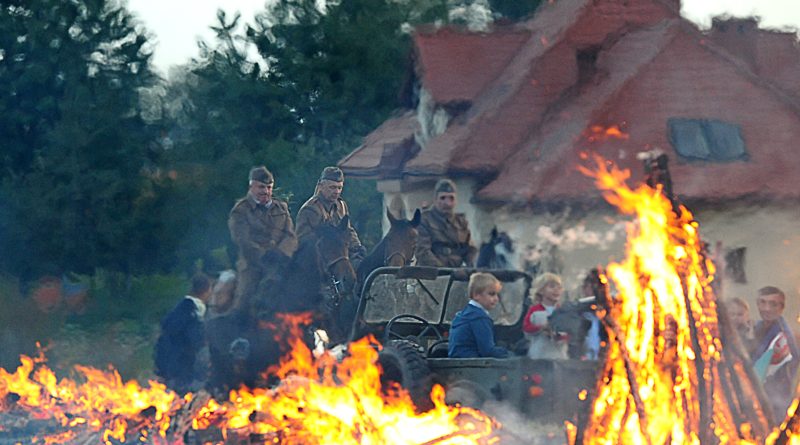 Na fot. Marian Klimek na koniu (od lewej pierwszy) podczas rocznicowych uroczystości bitwy
