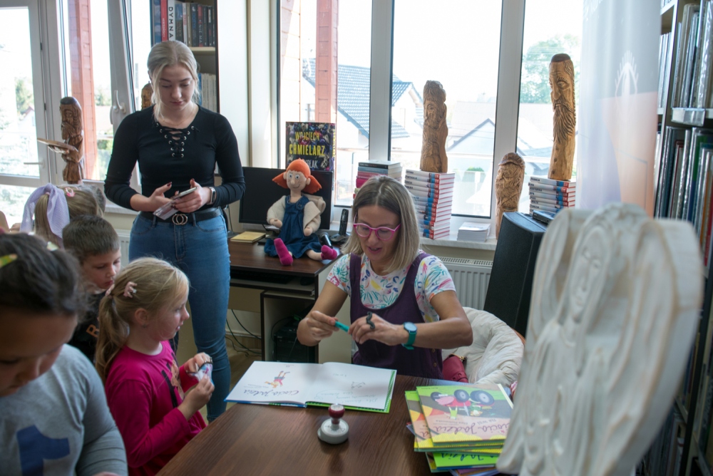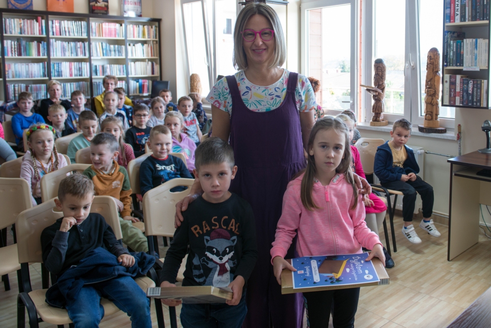 W trakcie spotkania literackiego dla dzieci, pisarka wręczyła dyplomy za super kontakt z książką. Nagrodzeni to: Zosia Bratko i Hubert Bratko. Gratulujemy!