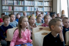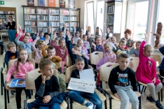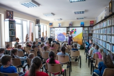 Pisarka dynamicznie poprowadziła spotkanie, doskonale zajmując uwagę dzieciom. Prezentowała, te najbardziej lubiane serie książek „Ciocia Jadzia” i humorystyczne opowieści w cyklu „Tupcio Chrupcio” – książki tłumaczone z języka włoskiego. Czytała dzieciom najzabawniejsze fragmenty książek, zwracając przy tym uwagę na kolorowe, własnego autorstwa ilustracje. Pani Eliza zajmująco też opowiadała o pracy pisarskiej i długim pobycie w Brazylii. Choć wspomniała, że ukończyła kurs tańca brazylijskiej samby, nie dała się jednak namówić na choćby krótki jego pokaz.