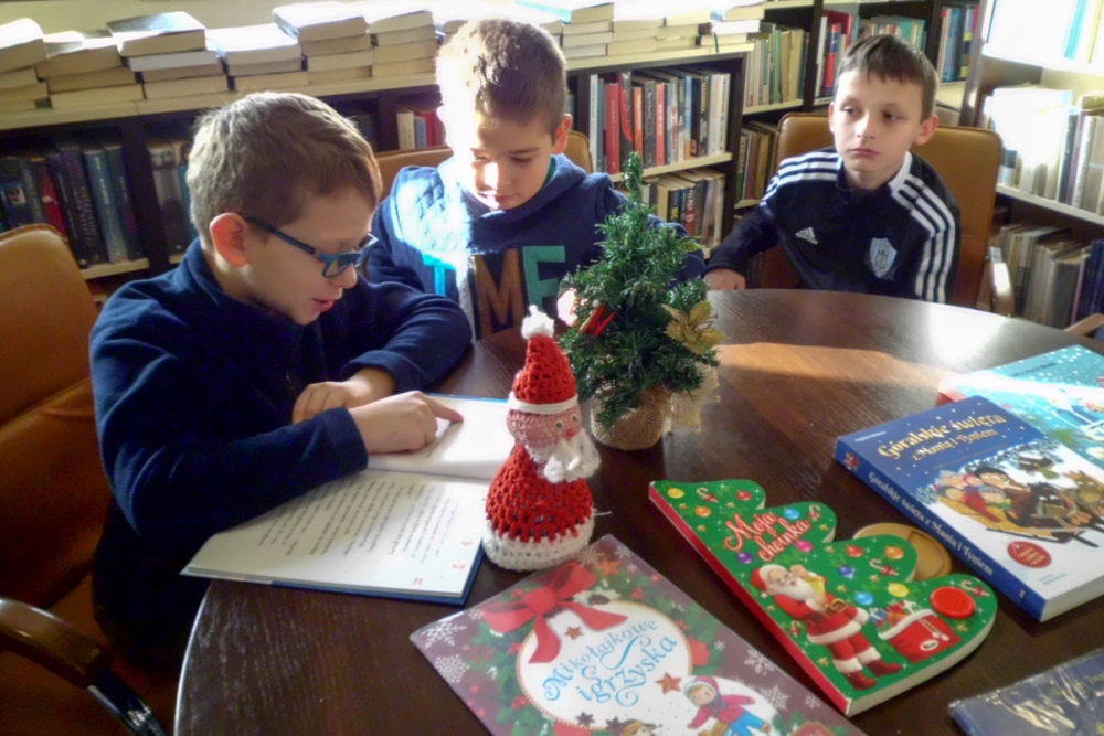 Spośród prezentowanych książek uczniowie czytali na głos wybrane fragmenty, m.in. z uroczych opowiadań Ewy Stadtmüller „Najpiękniejsze opowieści pod choinkę”. Dzieci ponadto opowiadały jak w ich rodzinach obchodzone są święta.