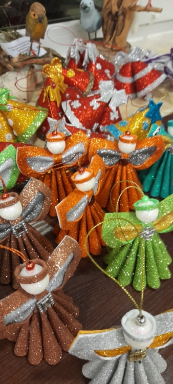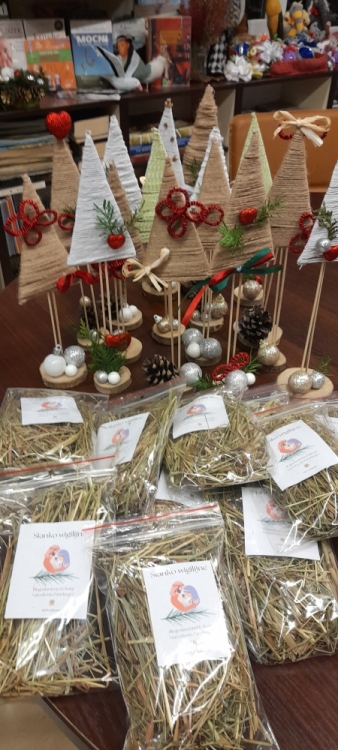 Za sprawą „zastępów aniołów” brokatowych, ręcznie zrobionych bombek, choinkowych kompozycji, brodatych skrzatów, dzwoneczków koronkowych, leśnych elfów, świerkowych stroików, a także różnorakiego rękodzieła -„hand made” – gotowego na prezent, zapachniało Świętami w Bibliotece