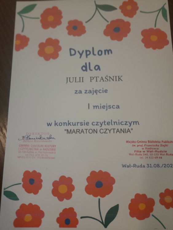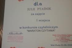 We wrześniowy wieczór (12.09) odbywało się Wał-Rudzkiej Bibliotece rozstrzygnięcie wielkiego wakacyjnego konkursu czytelniczego, pt. ”Maraton czytania” dla dzieci szkolnych, połączone