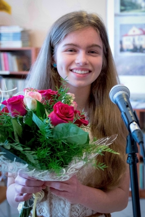 Weronika Kosman uczennica Gimnazjum w Przybysławicach uświetniła spotkanie swoim śpiewem.