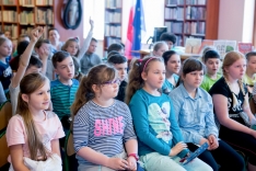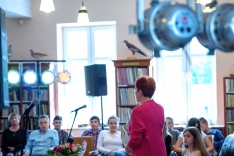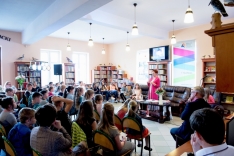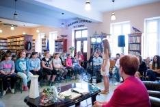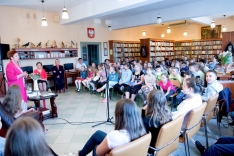 Małgorzata Strzałkowska – autorka ponad 200 książek dla dzieci, prezentowała wybrane książki i czytała wiersze. Niezwykłych wrażeń dostarczyły dzieciom wierszyki łamiące języki, które doskonale ćwiczą sprawność językową, a przy tym wywołują wiele emocji.