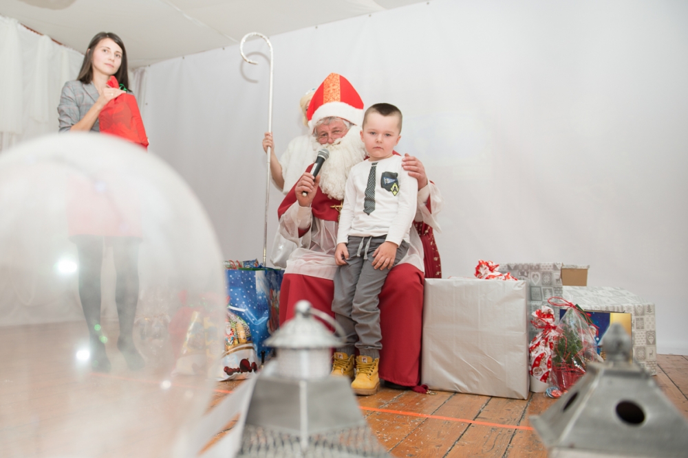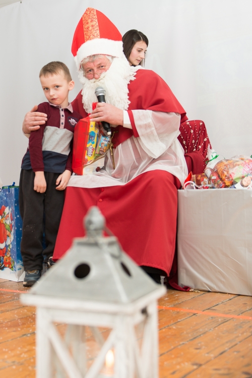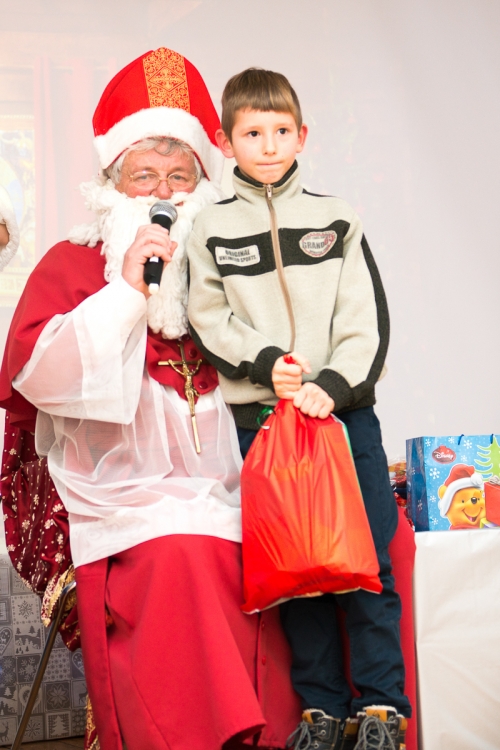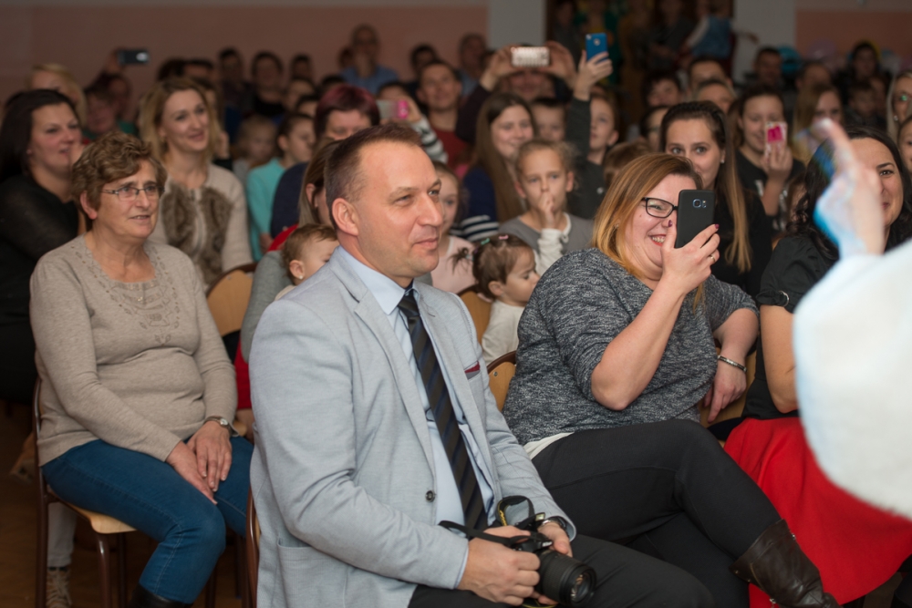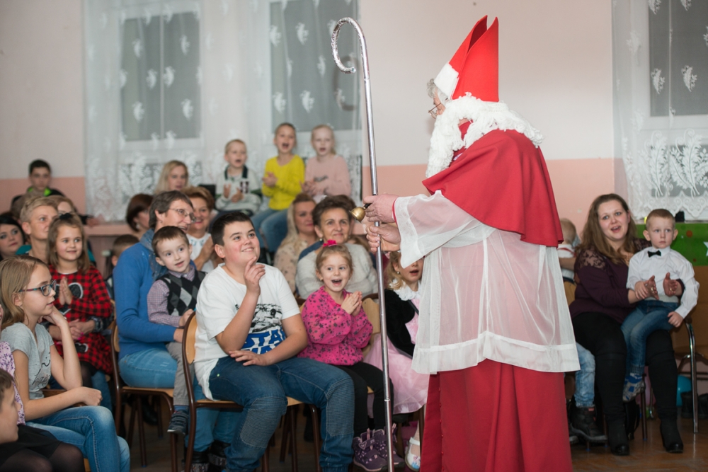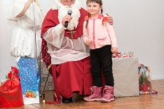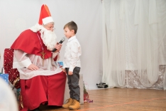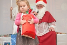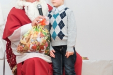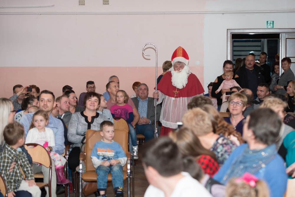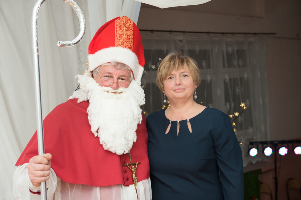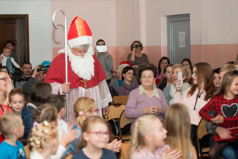 Po pięknej, pomysłowej, pełnej humoru prezentacji przybył, nieco spóźniony Święty Mikołaj, który zasiadł na przygotowanym tronie i rozdawał dzieciom (tylko grzecznym) prezenty. Była to też okazja do zobaczenia z bliska Świętego Mikołaja, porozmawiania z nim, a nawet wykonania sobie pamiątkowej fotografii.