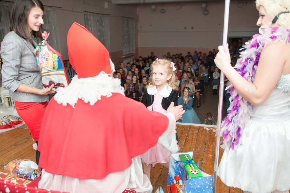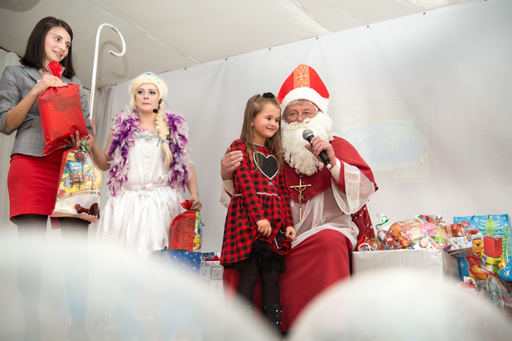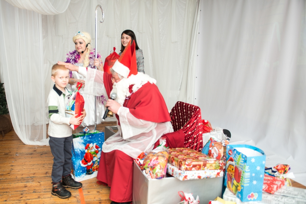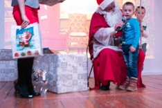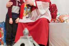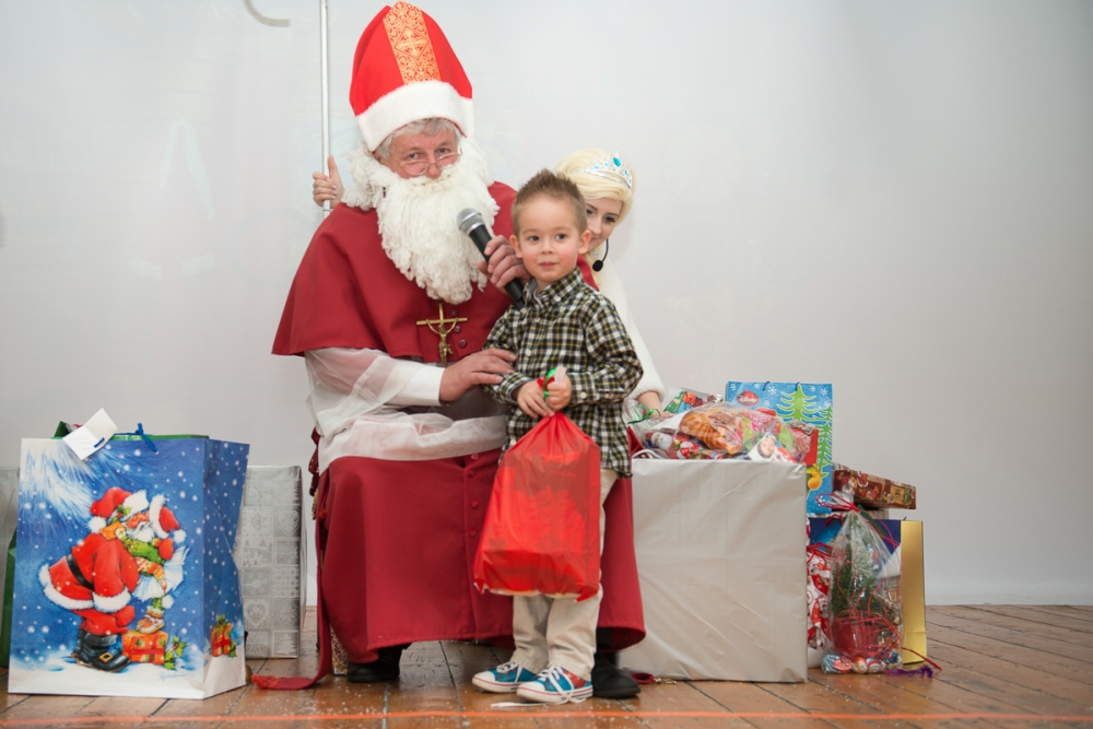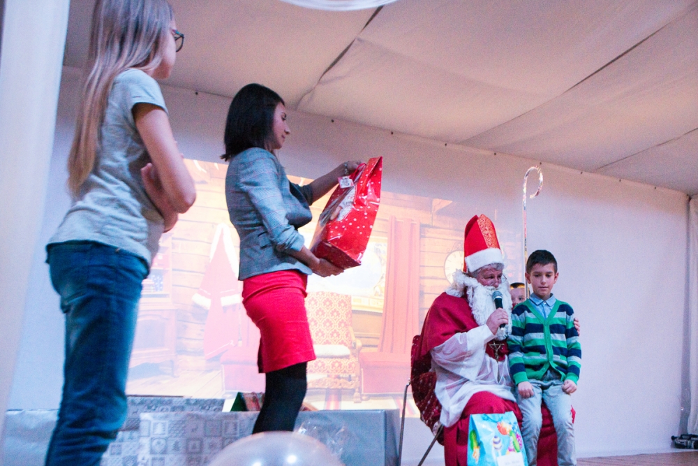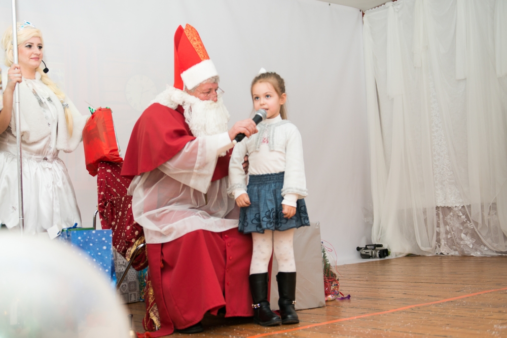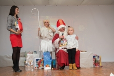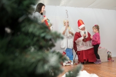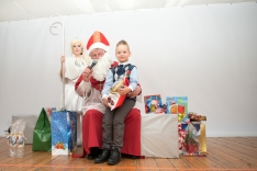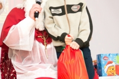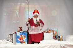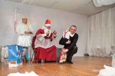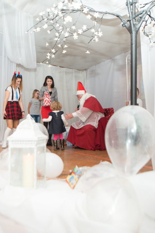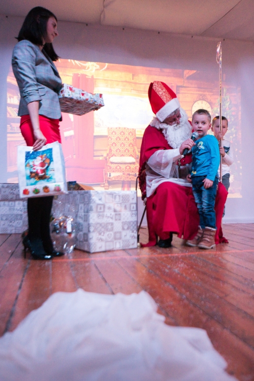 Po pięknej, pomysłowej, pełnej humoru prezentacji przybył, nieco spóźniony Święty Mikołaj, który zasiadł na przygotowanym tronie i rozdawał dzieciom (tylko grzecznym) prezenty. Była to też okazja do zobaczenia z bliska Świętego Mikołaja, porozmawiania z nim, a nawet wykonania sobie pamiątkowej fotografii.
