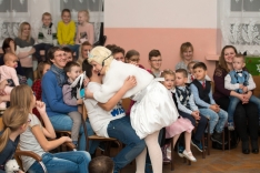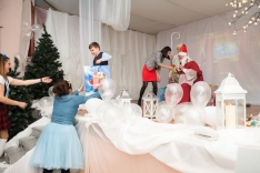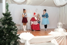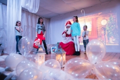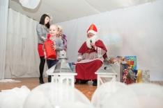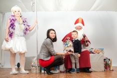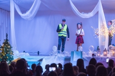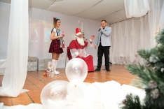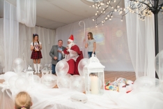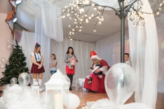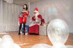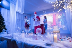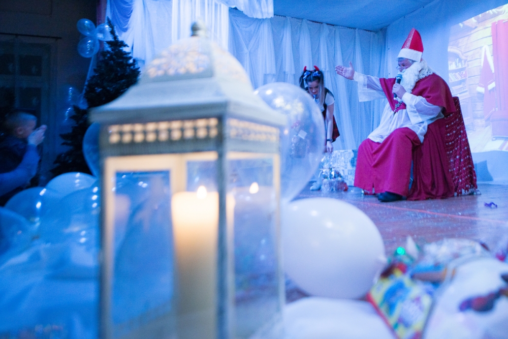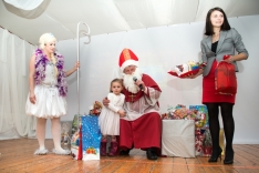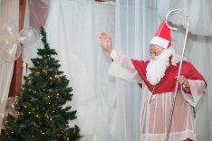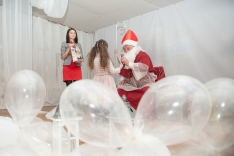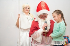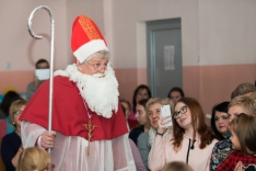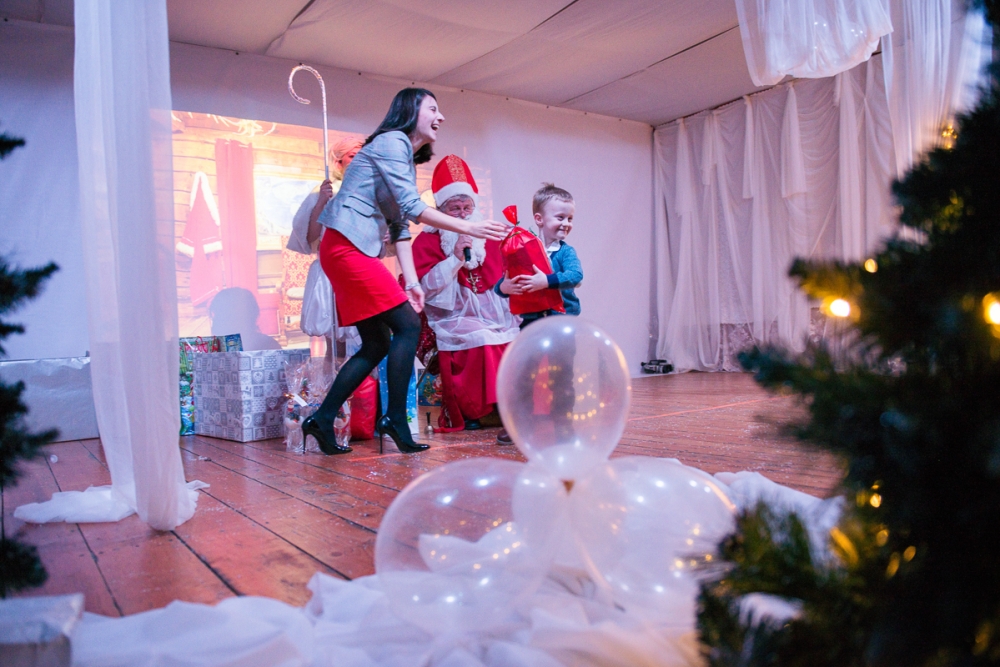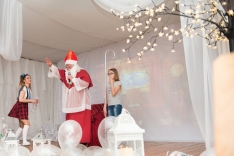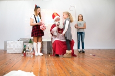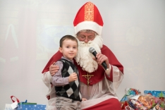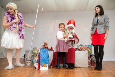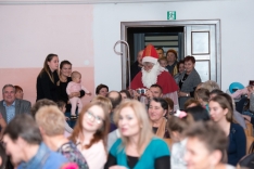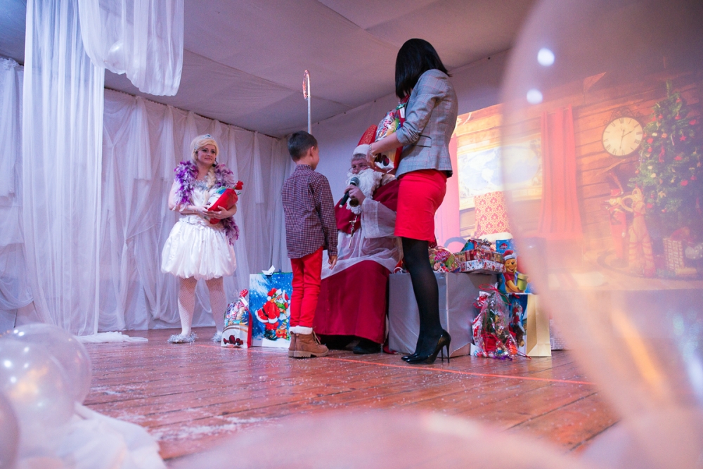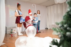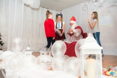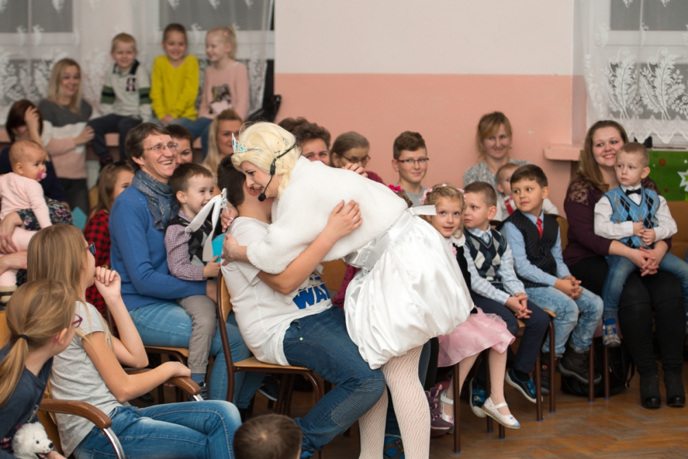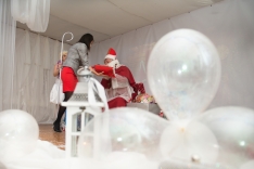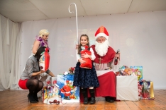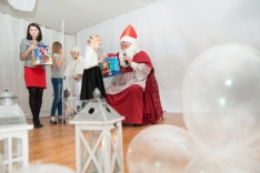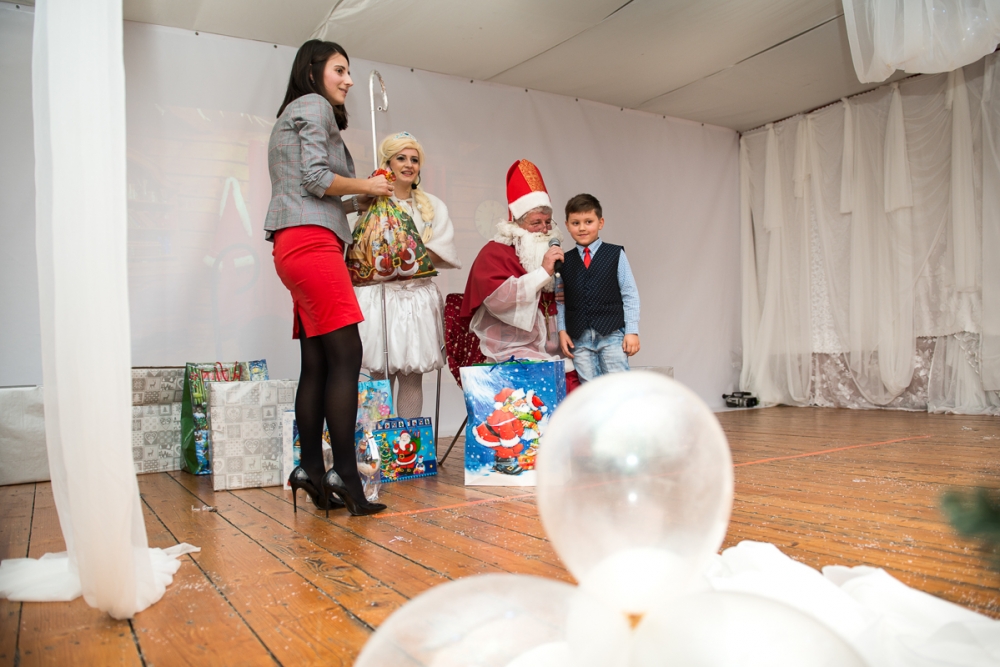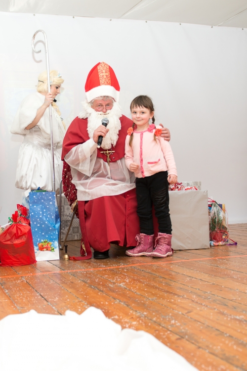 Po pięknej, pomysłowej, pełnej humoru prezentacji przybył, nieco spóźniony Święty Mikołaj, który zasiadł na przygotowanym tronie i rozdawał dzieciom (tylko grzecznym) prezenty. Była to też okazja do zobaczenia z bliska Świętego Mikołaja, porozmawiania z nim, a nawet wykonania sobie pamiątkowej fotografii.