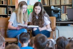 Najmłodszym czytały wzorowe czytelniczki naszej biblioteki: Katarzyna Pikul, Karolina Kawa oraz wychowawczyni Katarzyna Kaczyk. Płynnym, pięknym czytaniem popisała się młoda czytelniczka Kinga Kuklewicz.