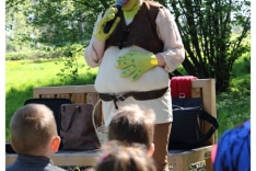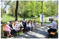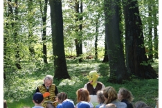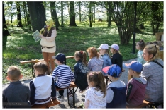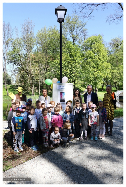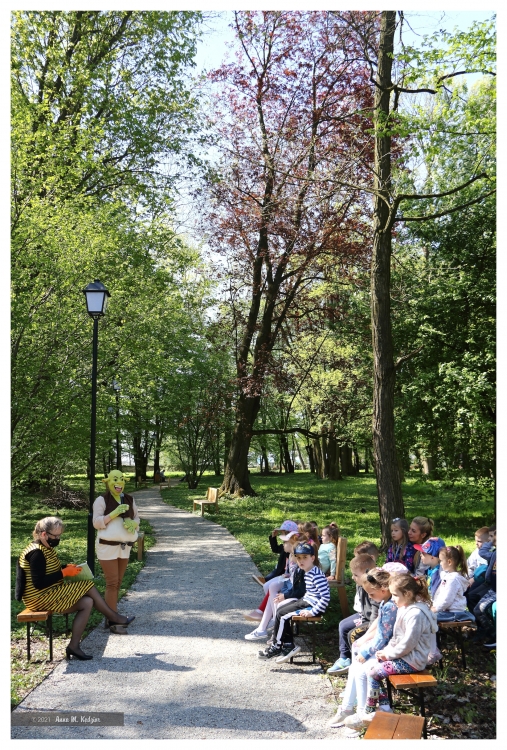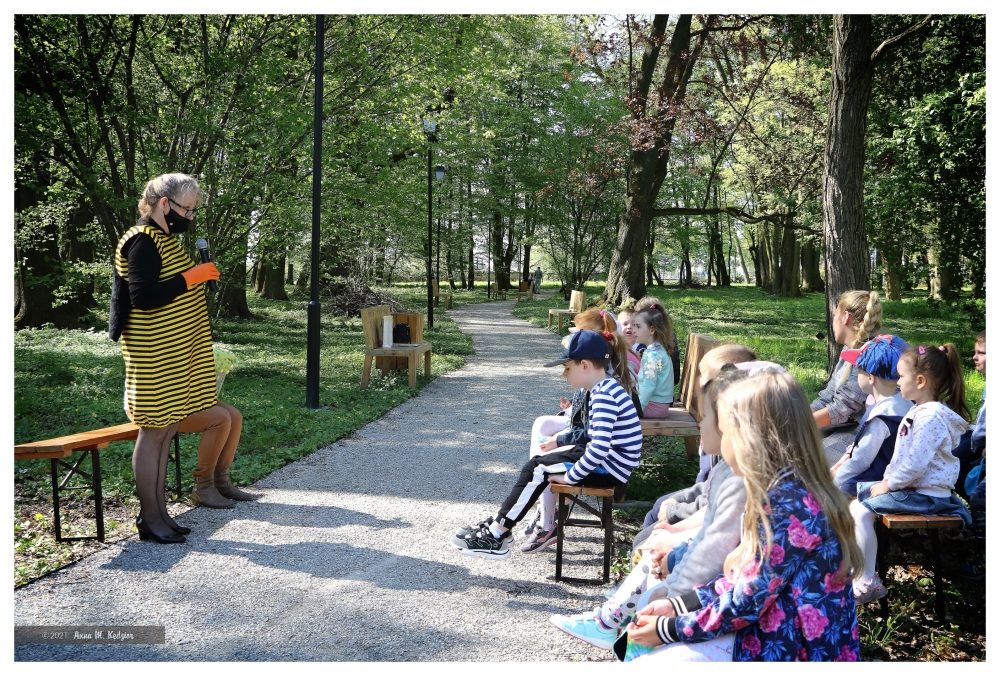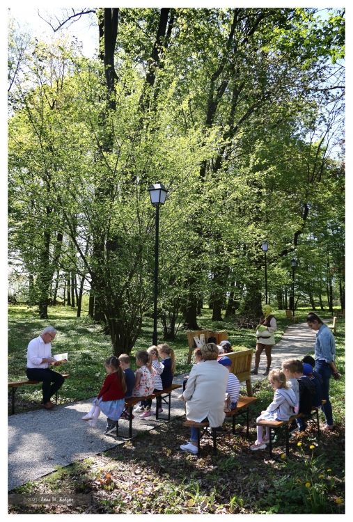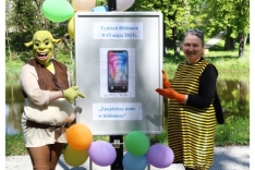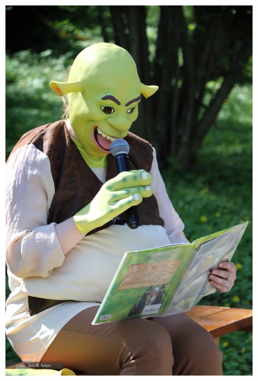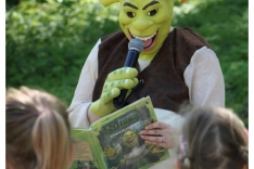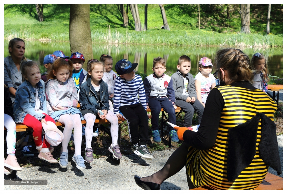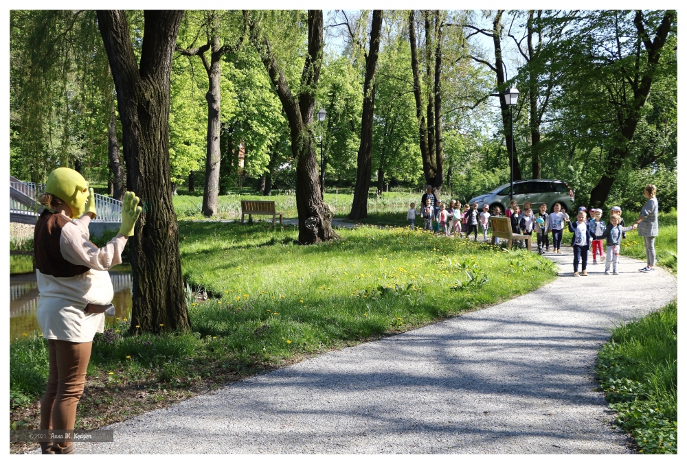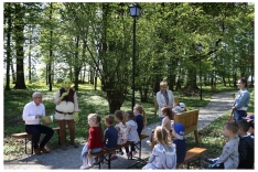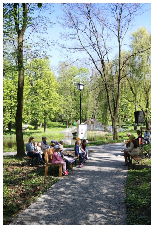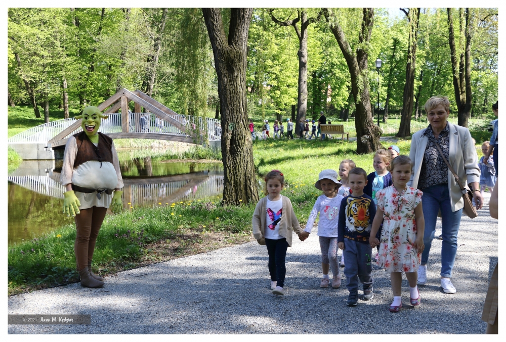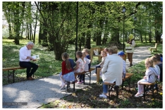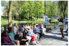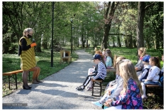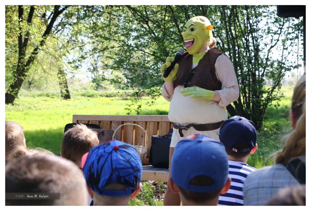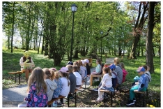 W przepięknej majowej scenerii radłowskiego parku odbyło się urocze spotkanie, podczas którego burmistrz Zbigniew Mączka, dyrektor GCKiC w Radłowie Barbara Marcinkowska oraz bibliotekarki miejskiej książnicy, Barbara Kruk i Katarzyna Baran, czytali dzieciom z okazji trwającego właśnie Tygodnia Bibliotek. Ku lepszej zabawie i większemu zainteresowaniu słuchaczy bibliotekarki wcieliły się w słynne bajkowe postaci: Shreka i pszczółki Mai. Fragment książeczki o przygodach Shreka, krótkie opowiastki o przyjaźni i wiosenne zagadki zachęciły małych słuchaczy do odwiedzania biblioteki, a ekologiczne drewniane zawieszki z naszym logo, które przedszkolaki otrzymały w prezencie, będą przypominały o danej nam obietnicy. Zatem do szybkiego ponownego zobaczenia, miejmy nadzieję, już wkrótce w bibliotece. Dziękujemy dyrekcji radłowskiego przedszkola oraz wychowawcom za możliwość zorganizowania spotkania, a przedszkolakom za miły czas spędzony z książką.