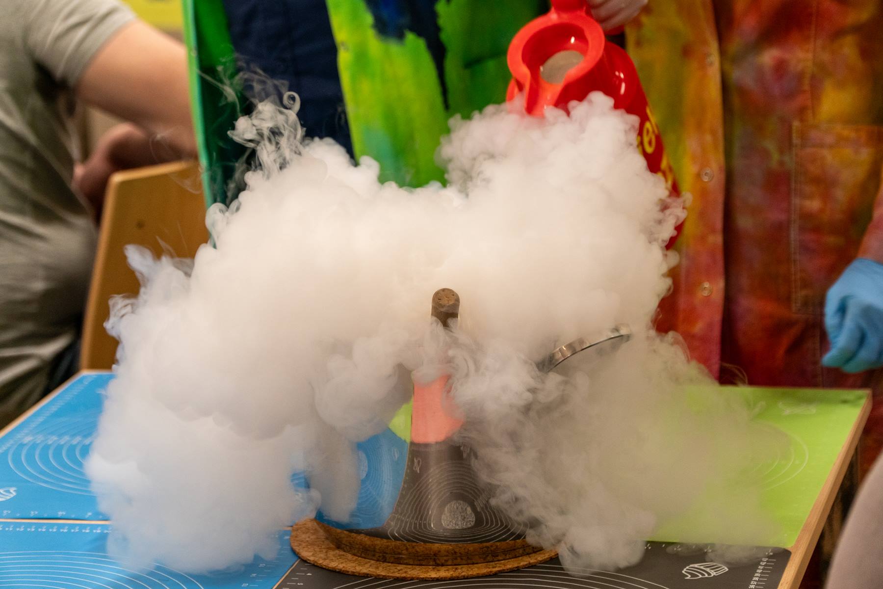 To już kolejne spotkanie z szalonymi naukowcami z Laboratorium Pana Korka w naszej bibliotece. Znowu było mnóstwo zabawy i ciekawostek. Tym razem Agnieszka Jaworska i Michał Szydłowski zaprosili nas do molekularnej kuchni! Podopieczni Środowiskowego Domu Samopomocy w Siedlcu oraz dzieci ze Specjalistycznej Placówki Wsparcia Dziennego w Radłowie, a także chętni najmłodsi czytelnicy naszej książnicy, mieli okazję uczestniczyć w „produkcji” lodów, przy użyciu ciekłego azotu. Uczestnicy zgodnie twierdzili, że było FANTASTYCZNIE! Dodajmy jeszcze, że lodowy deser wszyscy zajadali z ciekawością i lekkim niedowierzaniem, że smakują jak „prawdziwe lody”.