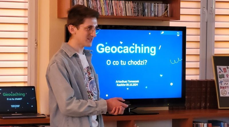 Czym jest geocaching, z „czym to się je” wyjaśniał 9 października, na lekcji bibliotecznej, niezwykle pozytywnie zakręcony młody człowiek- pan Arkadiusz Tomaszek- twórca wielu radłowskich skrytek, w tym bibliotecznej skrytki geocachingowej.