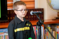 I – miejsce – Artur Kurzawski, który zaprezentował wiersz „Ptasie plotki” (Niepubliczne Przedszkole w Biskupicach Radłowskich)