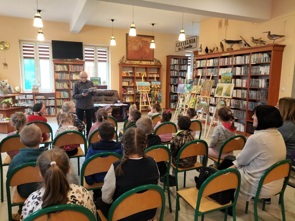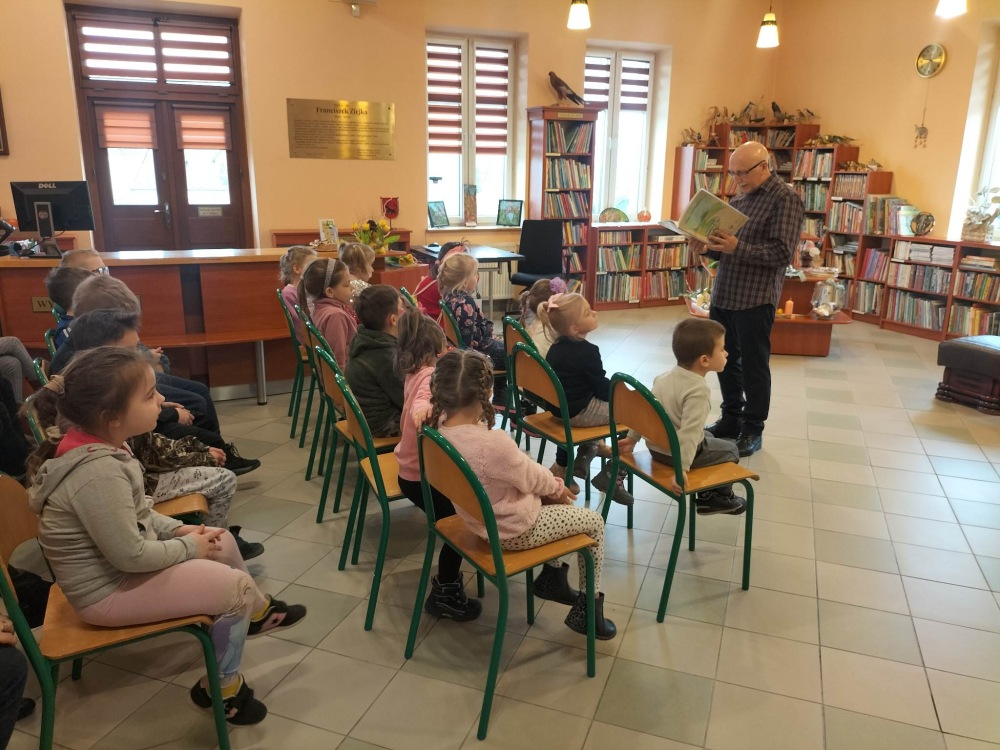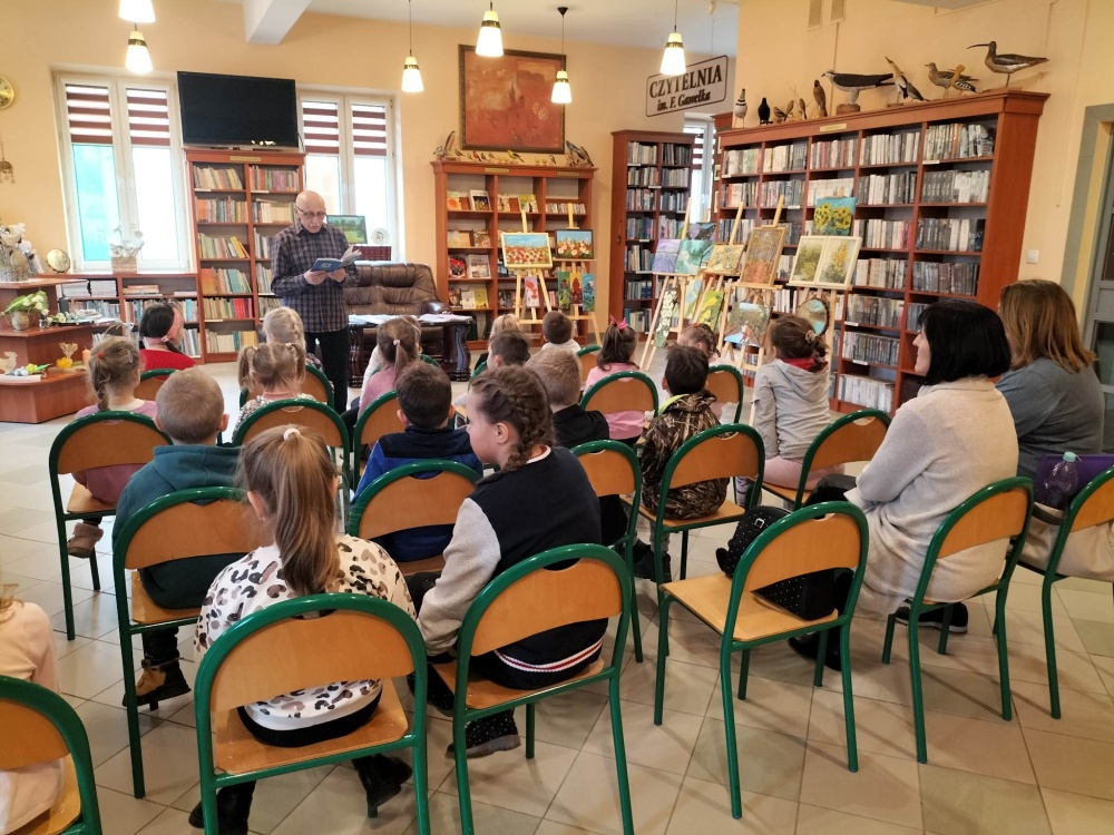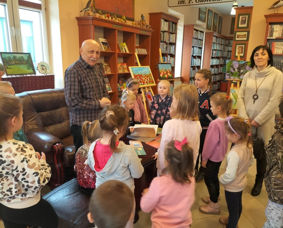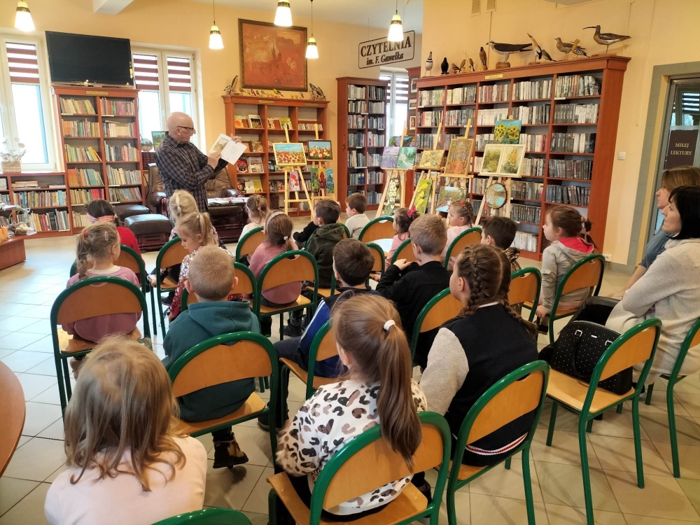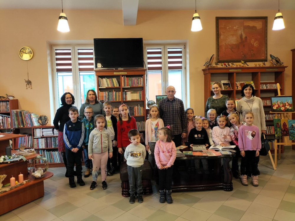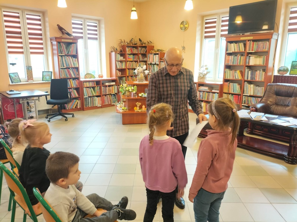 W czasie wizyty, która odbyła się 15 marca nasi goście mieli niezwykłą okazję zapoznać się z twórczością pana Józefa Trytka, który przybył na spotkanie z dziećmi do naszej biblioteki.