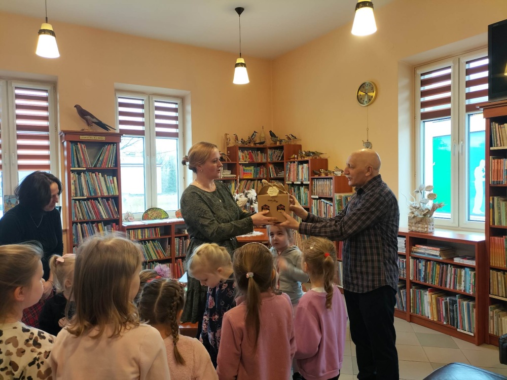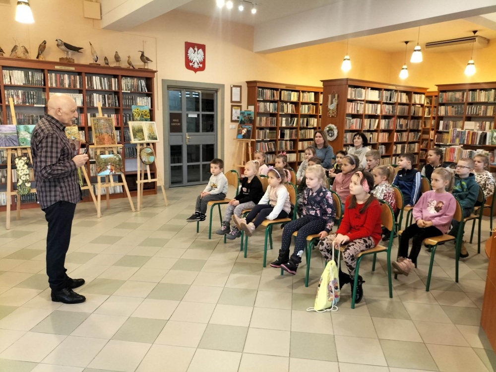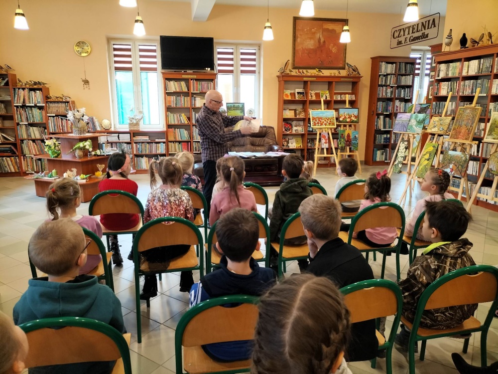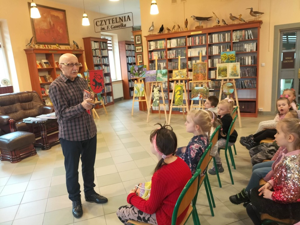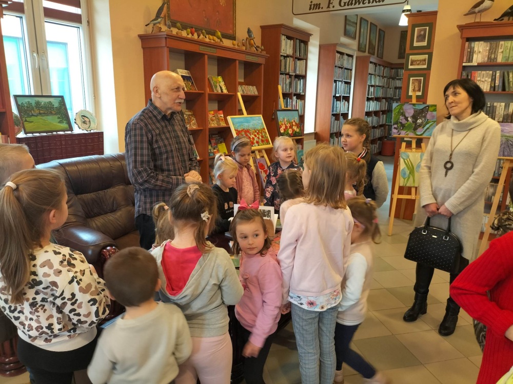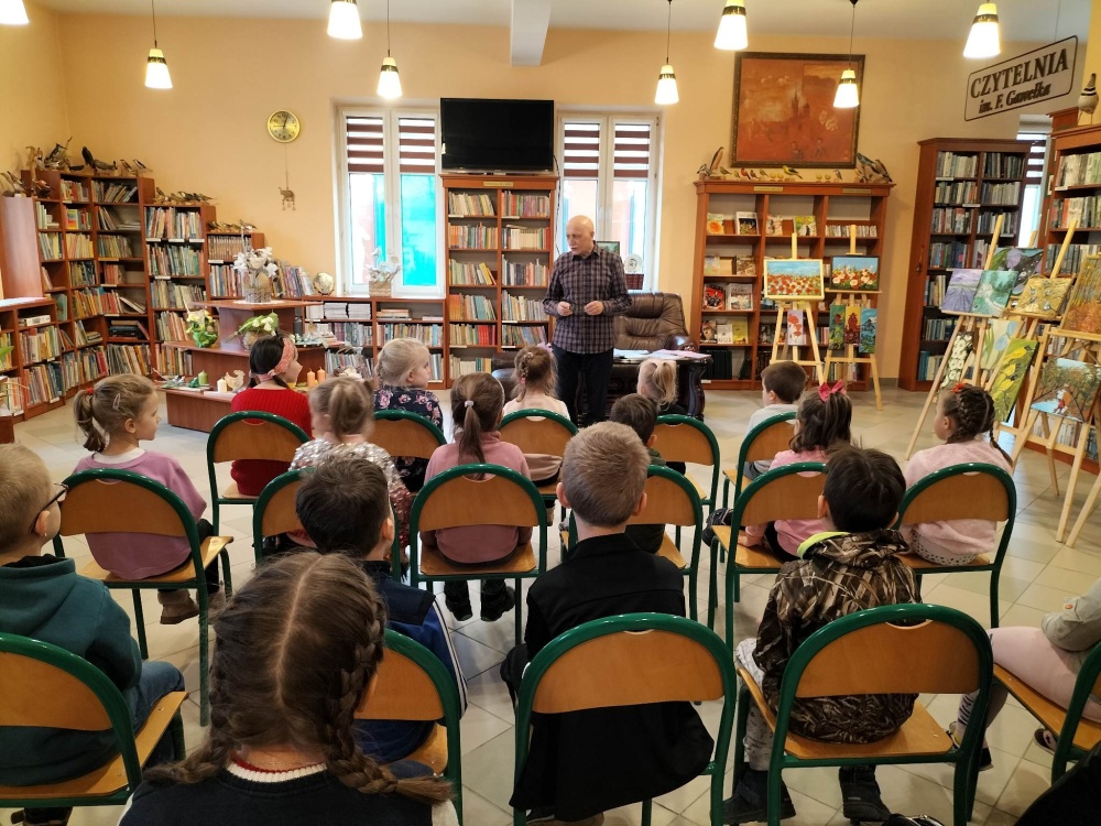 W czasie wizyty, która odbyła się 15 marca nasi goście mieli niezwykłą okazję zapoznać się z twórczością pana Józefa Trytka, który przybył na spotkanie z dziećmi do naszej biblioteki.