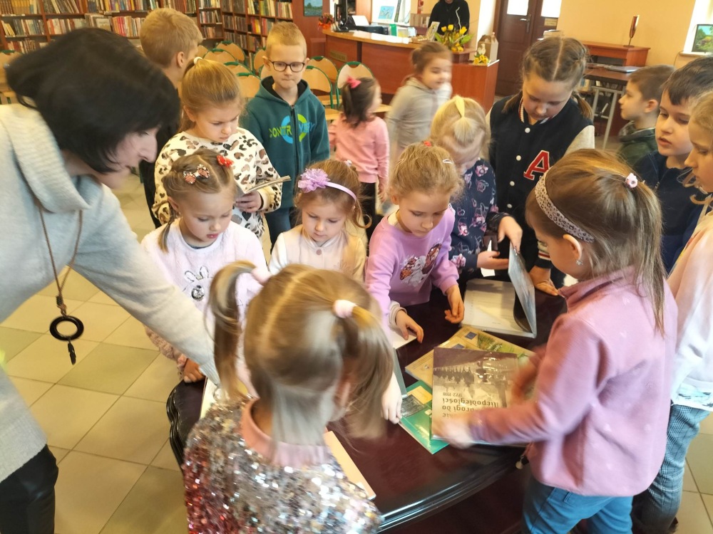 Przedszkolaki i drugoklasiści z Mikołajowic wraz z wychowawczyniami przyjechali do Radłowa, by zwiedzić Miejsko-Gminną Bibliotekę Publiczną im. prof. Franciszka Ziejki.