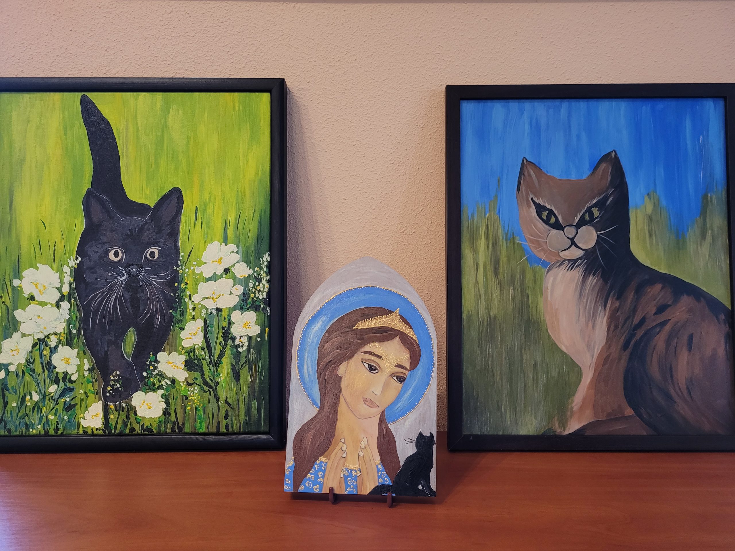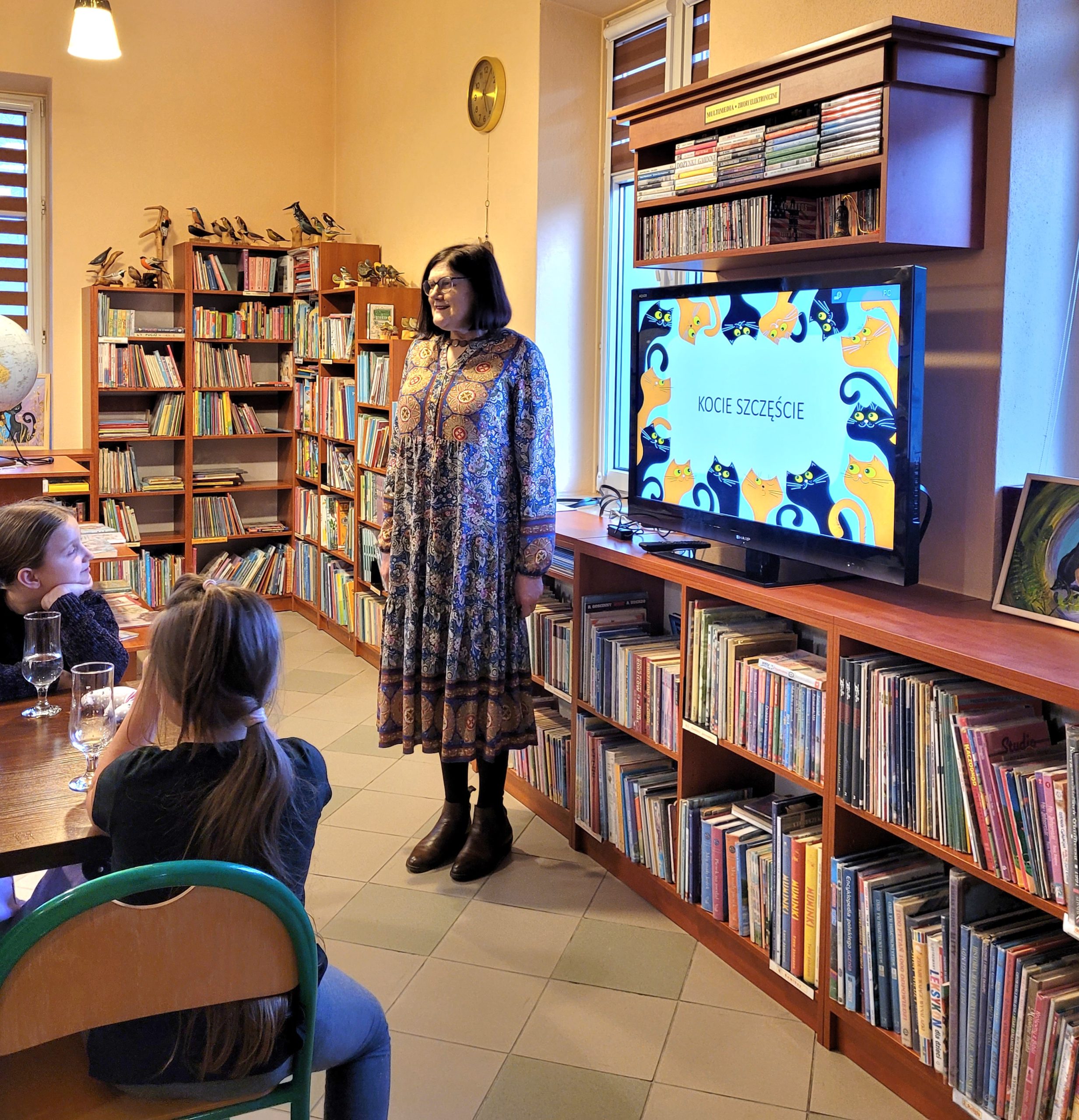 Spotkaniu towarzyszyła wystawa obrazów pani Anny Kędzior, utrzymana w „kociej tematyce”.