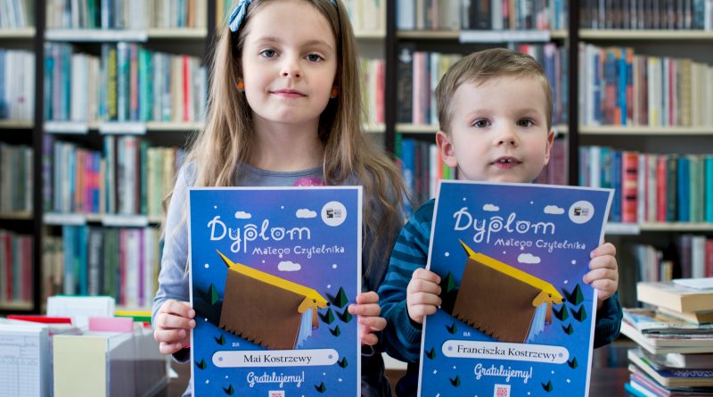 w bibliotece. Uwielbiają nowe, bogato ilustrowane wydawnictwa, a także „książki zabawki”. Franiu i Maja brali udział w czytelniczym projekcie „Mała książka – wielki człowiek”. Na jego finał zostali nagrodzeni specjalnym dyplomem młodego czytelnika, bibliotecznym kwiatuszkiem i naklejkami: „Księżniczka czytelnictwa” i „Super czytelnik”. Brawa dla dzieci i rodziców, którzy znajdują czas na pielęgnowanie kontaktu z książką. To bardzo ważna rzecz!