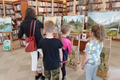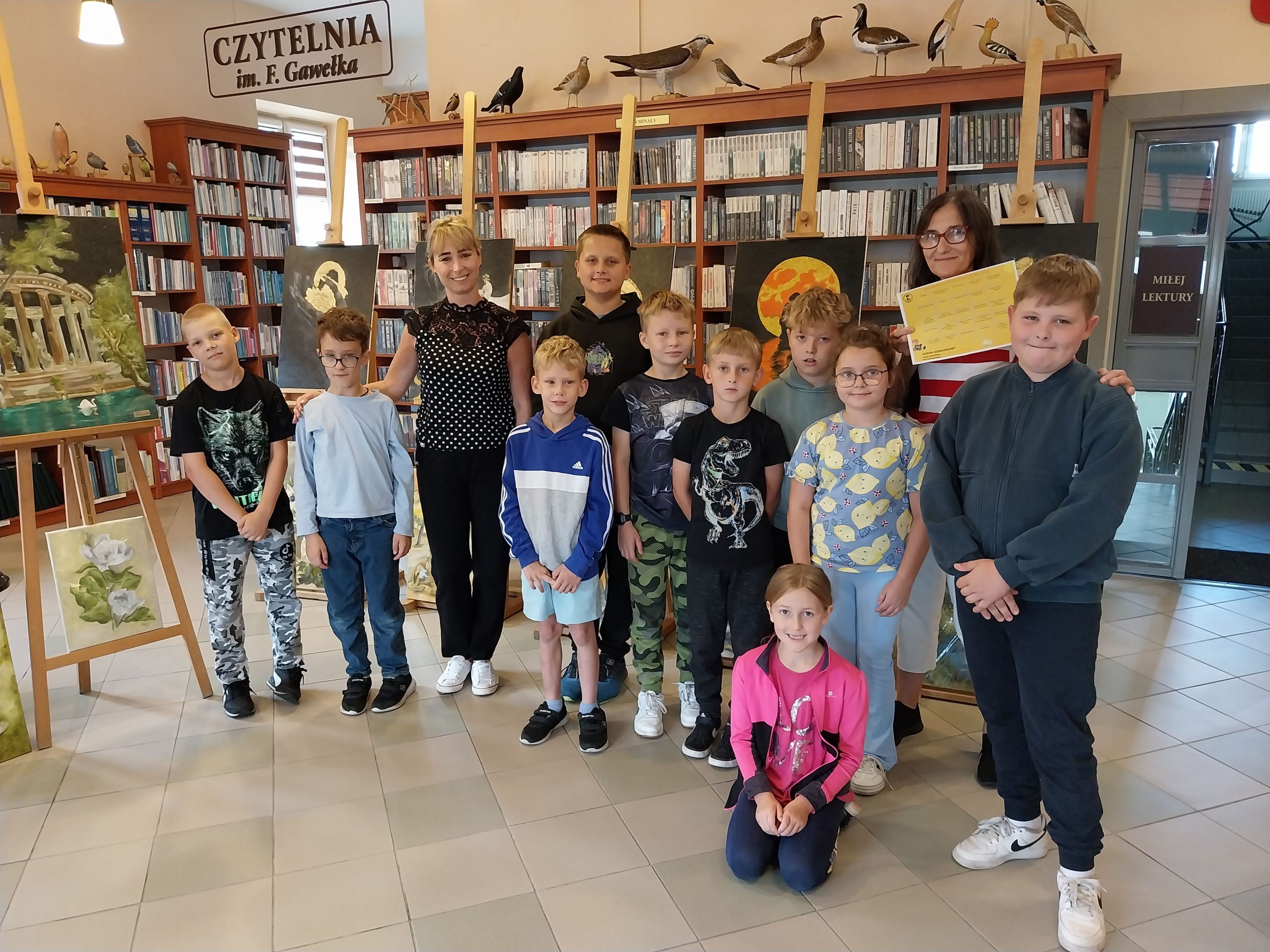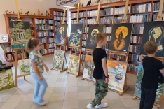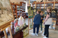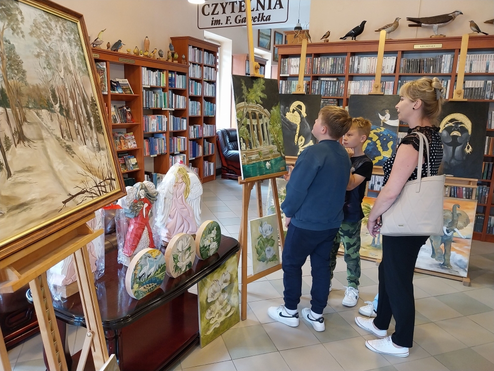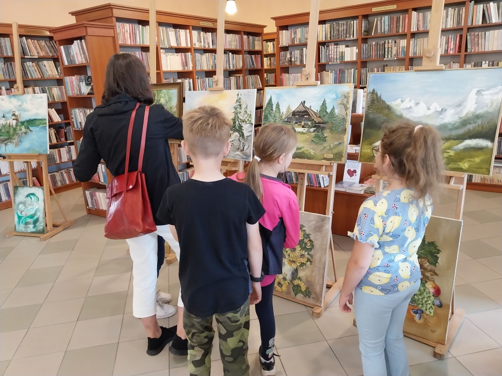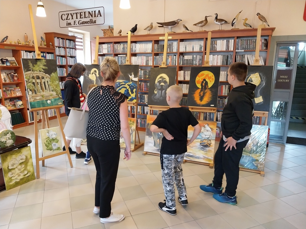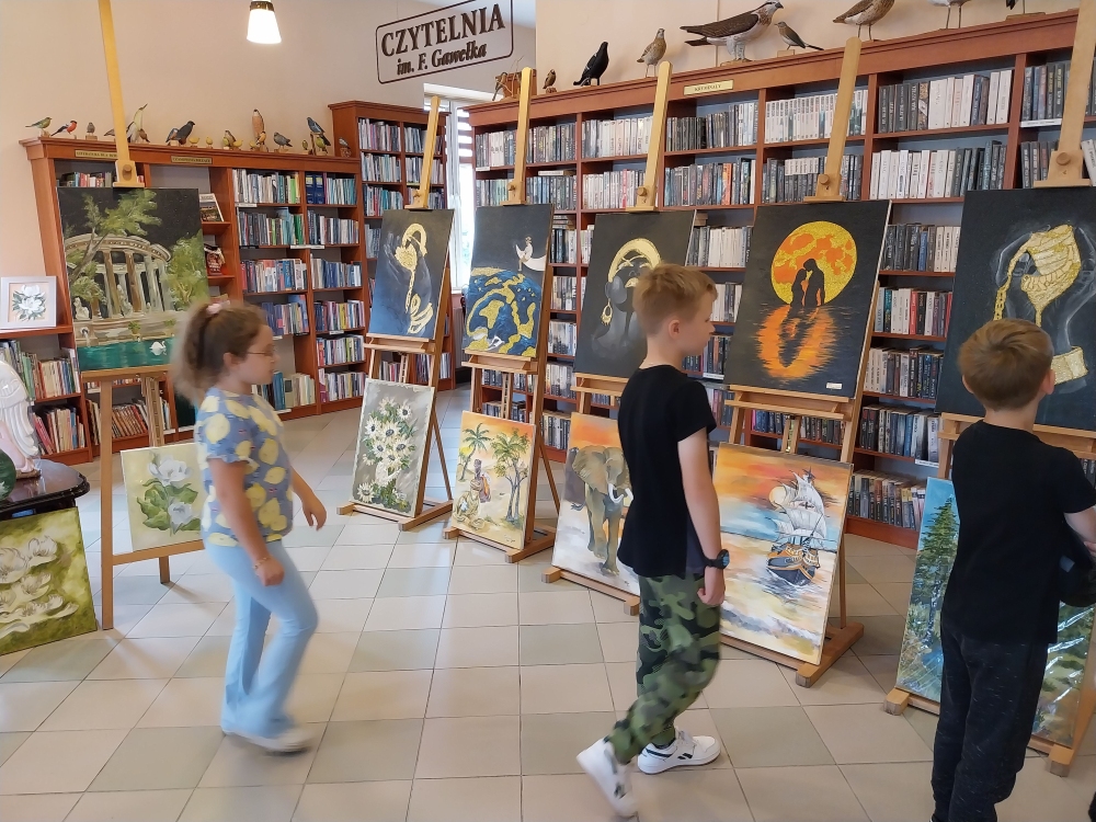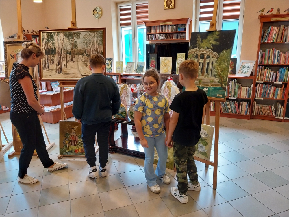 Nie inaczej było w piątkowy poranek podczas wizyty w bibliotece wychowanków i wychowawców Specjalistycznej Placówki Wsparcia Dziennego w Radłowie. Nasi goście z zachwytem podziwiali prezentowane obrazy. Chociaż są wakacje, możemy powiedzieć, że była to wspaniała lekcja ucząca wrażliwości na piękno, sztukę.