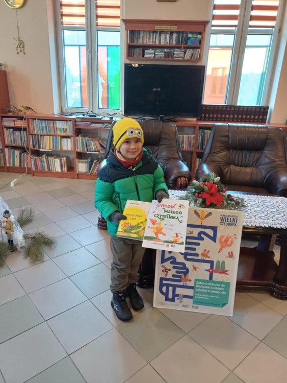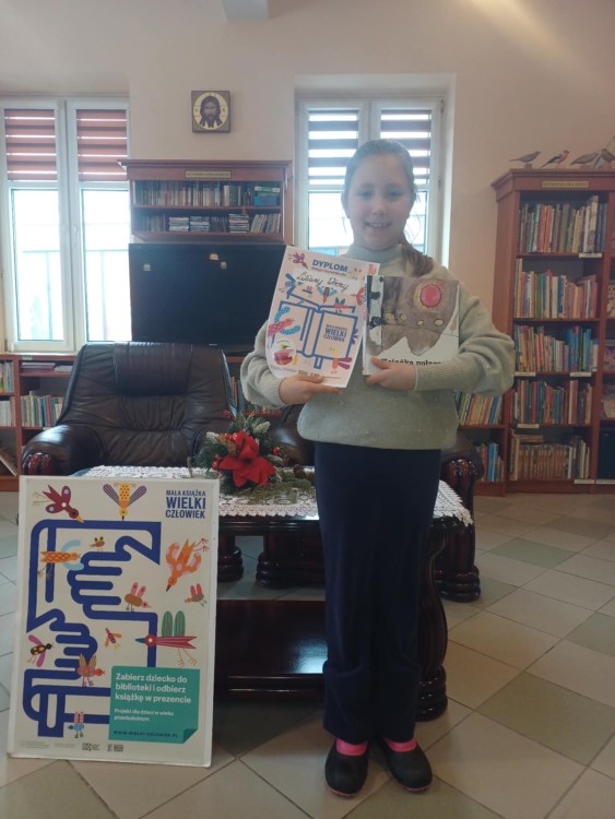 Akcja „Mała książka- Wielki Człowiek cieszy się w naszej bibliotece niesłabnącym zainteresowaniem. Młodzi czytelnicy chętnie wypożyczają kolejne książki i zdobywają dyplomy, a w obecnej edycji projektu do dyplomów dołączamy również książkowe nagrody.