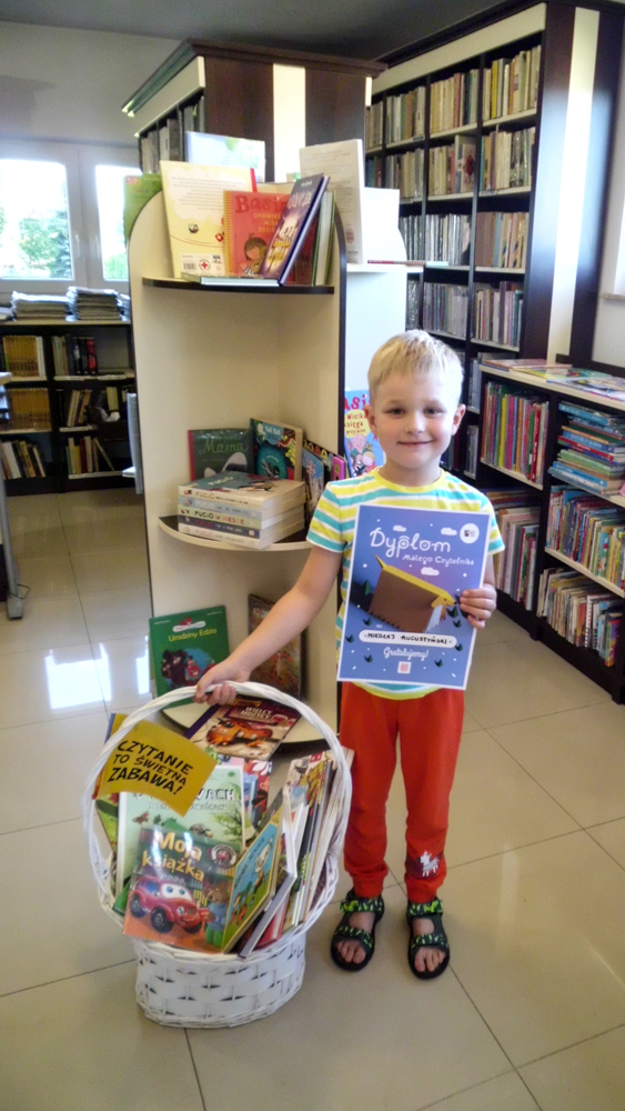 Jest nam bardzo miło przyznać Mikołajowi Augustyńskiemu Dyplom Małego Czytelnika. Gratulujemy wytrwałości czytelniczej i pięknego kontaktu z książką. Mamy nadzieję, że ten przykład czytelniczy, będzie wzorem do naśladowania przez koleżanki i kolegów Mikołaja.