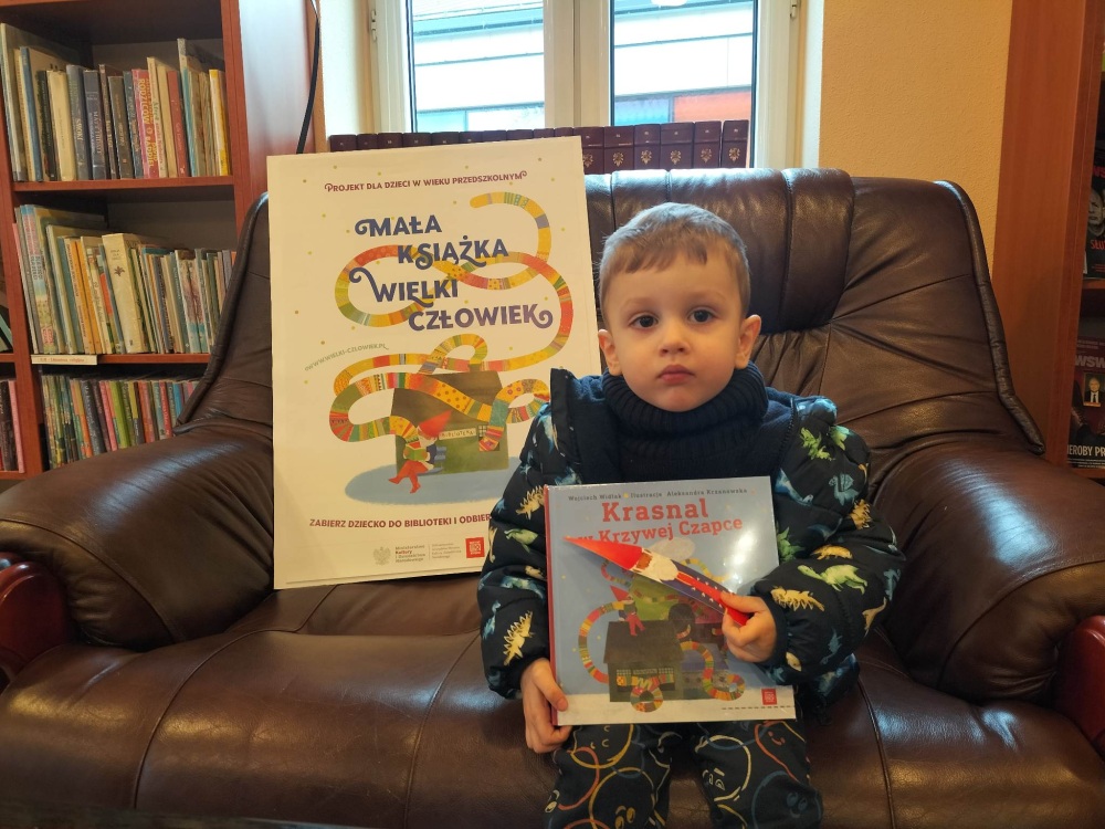 Zachęcamy rodziców przedszkolaków do odwiedzin w bibliotece i odebrania darmowej wyprawki czytelniczej. Wiele dzieci zapoznało się już z krasnalem w krzywej czapce – bohaterem najnowszej edycji akcji „Mała książka – wielki człowiek”, a ostatnio do tego grona dołączył Sebastian Majchrzak. Bardzo nam miło, że zyskaliśmy kolejnego młodego czytelnika, życzymy ciekawej lektury i wielu przygód