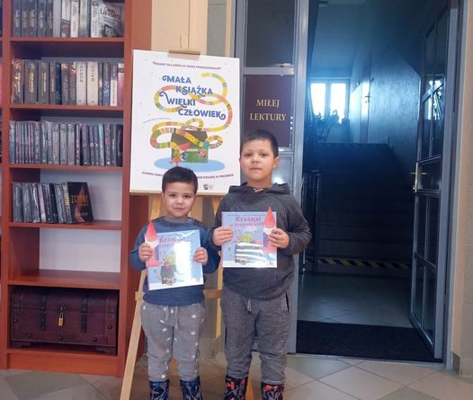 Serdecznie gratulujemy Aleksandrowi i Igorowi Chmielowskim odebrania wyprawek czytelniczych. Aleksander brał udział w poprzedniej edycji akcji „Mała książka- wielki człowiek”, zaznajomiony z biblioteką z radością powitał w gronie książkowych przyjaciół krasnala w krzywej czapce i zachęcił brata do sięgnięcia po wyprawkę.
