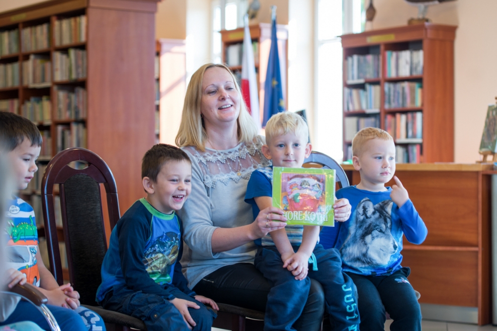 W środę 26 września biblioteka gościła grupę przedszkolaków wraz z wychowawczynią panią Renatą Trytek z Publicznego Przedszkola w Radłowie. Tematem spotkania było zapoznanie dzieci z biblioteką, bowiem dla niektórych była to pierwsza wizyta w domu książki. Nasi goście zwiedzili placówkę, dowiedzieli się co należy zrobić, aby stać się czytelnikiem biblioteki oraz jak należy się w niej zachowywać i jak dbać o książki. W czasie spotkania przedszkolaki wykazały się niezwykłą znajomością bajek i ich bohaterów, aktywnie uczestniczyły w zajęciach oraz z uwagą i skupieniem wysłuchały bajeczki Wiesława Drabika pt. „Chore kotki”. Na zakończenie dzieci otrzymały w prezencie kolorowe zakładki do książek i słodką niespodziankę. Żegnając się zapewniały, że przyjdą ponownie, tym razem z rodzicami, by zapisać się do biblioteki i wypożyczyć książki.