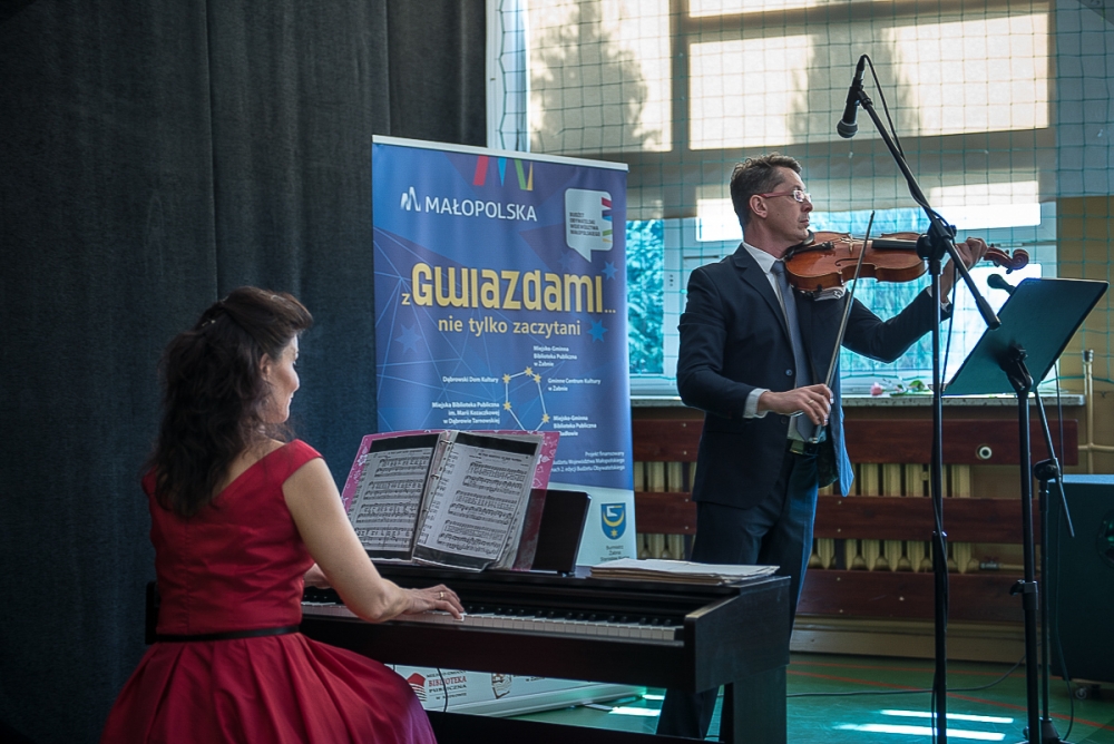 Dwoje wspaniałych artystów: Joanna Błażej-Łukasik (fortepian) i Paweł Łukasik (altówka), zaprosiło młodzież gimnazjalną z Zabawy, Radłowa i Woli Radłowskiej do wspólnej, muzycznej podróży do najpiękniejszych zakątków świata. Koktajl muzyczny okraszony został przez artystów, pięknymi opowieściami o niezwykłych miejscach globu związanych z prezentowanymi utworami.