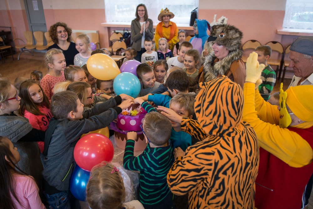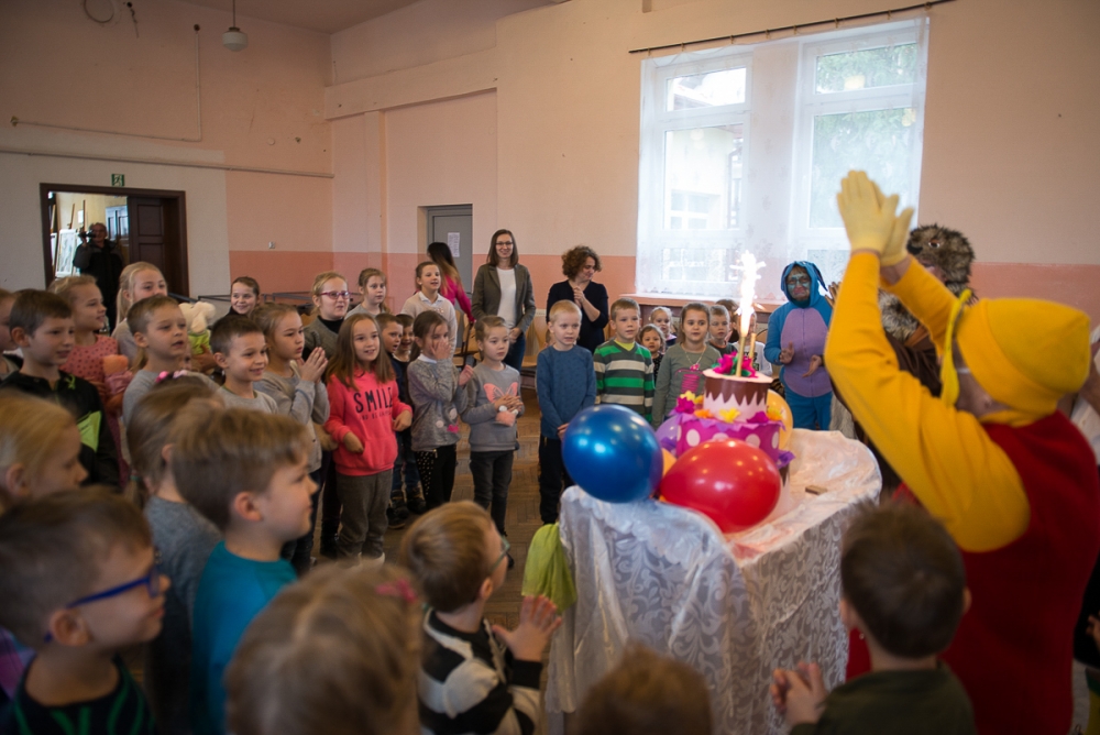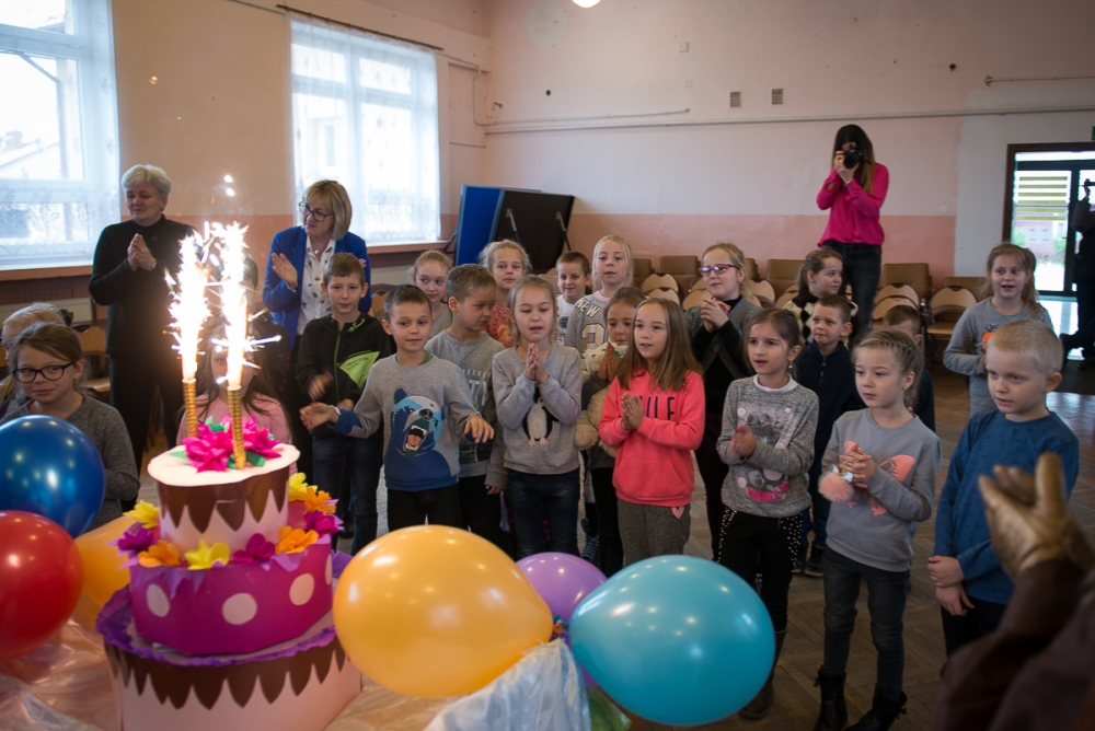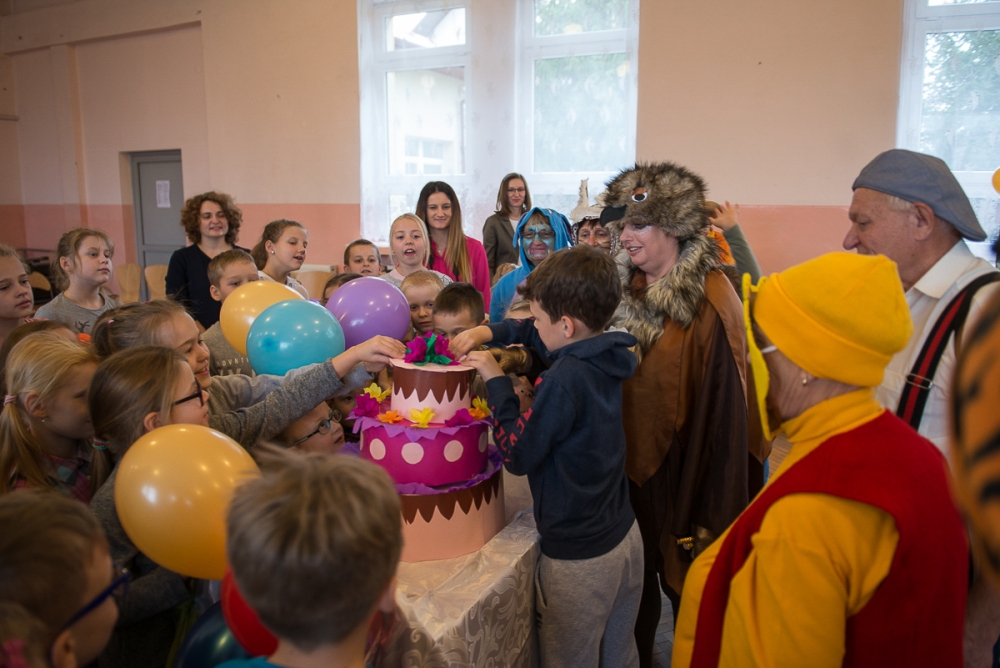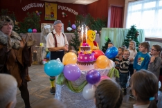 Jak to na urodzinach bywa, Miś nie zapomniał również o torcie pełnym smakołyków, a później dzieci zaproszone zostały do skocznych, misiowych tańców. Wszyscy z uśmiechem na buziach pożegnali Misia, który zadowolony z prezentów, zaprosił wszystkich na kolejne urodziny za rok.