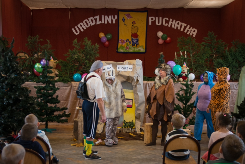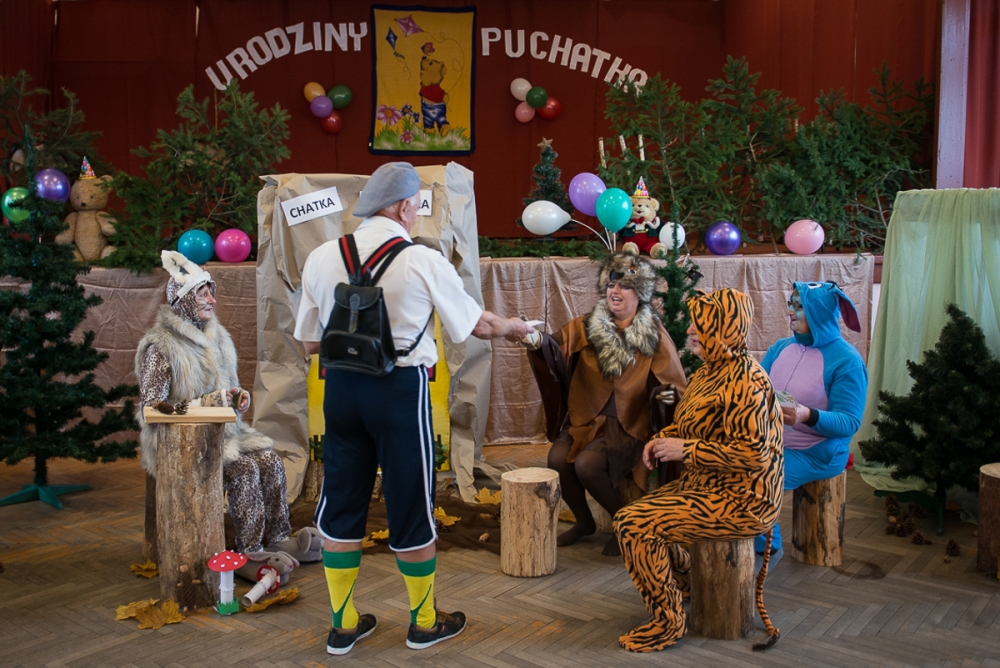 W role głównych bohaterów – przyjaciół Puchatka wcieli się aktorzy, seniorzy z grupy teatralnej ”Złoty krąg”, którzy przygotowali specjalnie na tę okazję barwne przedstawienie.