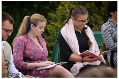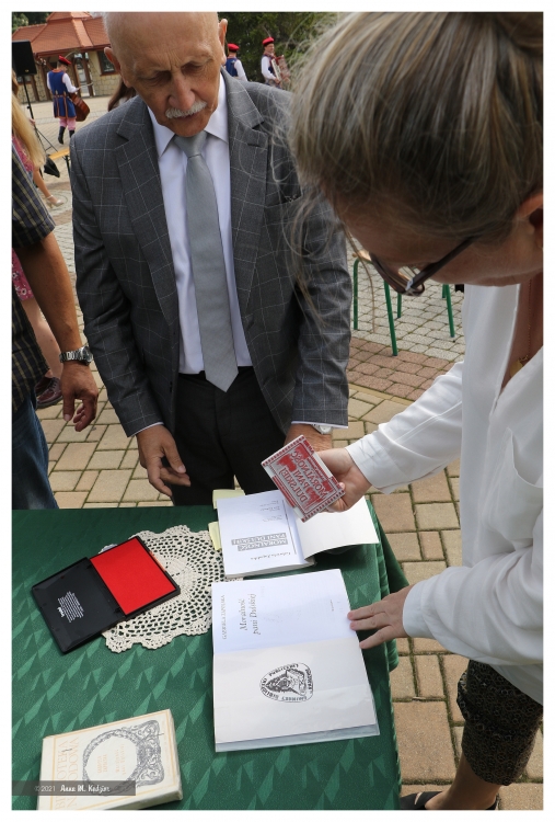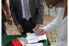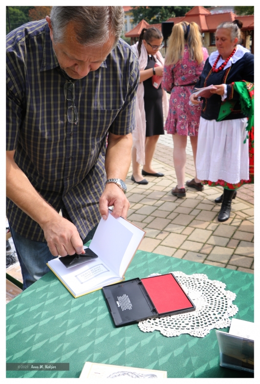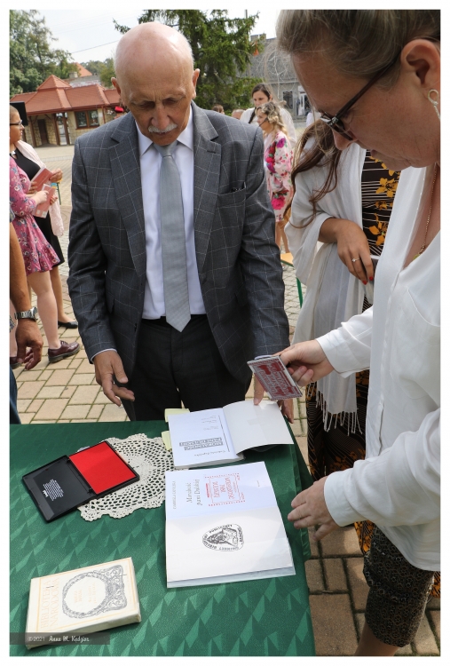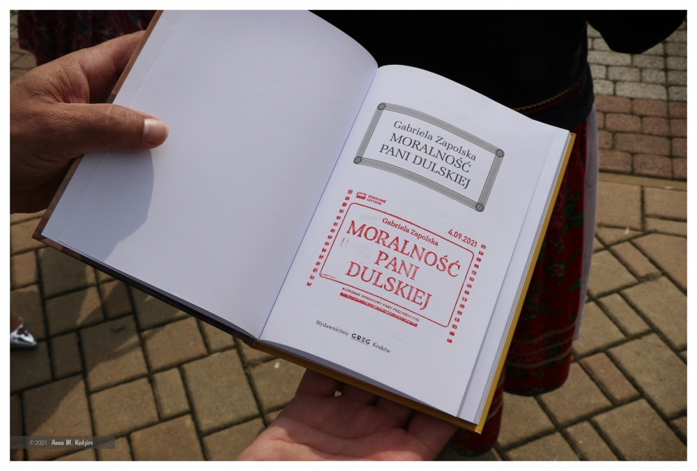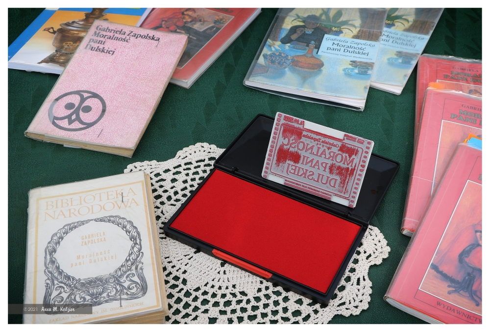 Na zakończenie spotkania uczestnicy otrzymali pamiątkowe stemple, przybite pieczęcią przysłaną z Kancelarii Prezydenta RP, na przyniesionych egzemplarzach „Moralności pani Dulskiej”.
