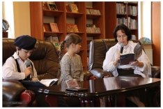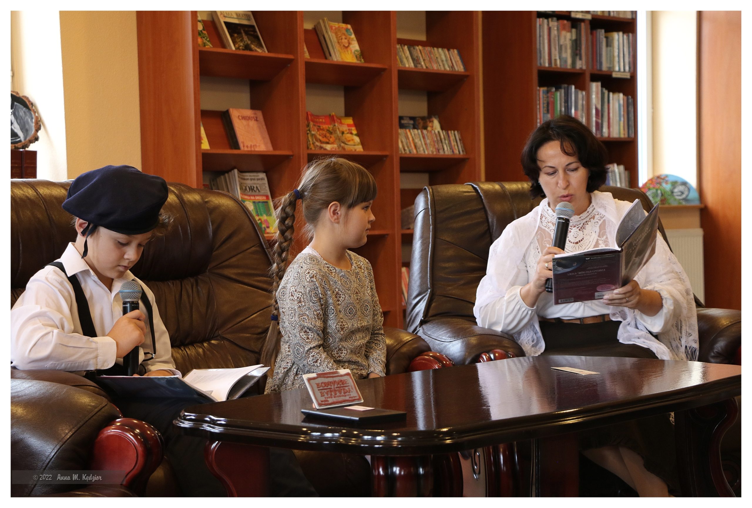 p. Magdalena Kapera – Patuła – bibliotekarka radłowskiej biblioteki oraz najmłodsi czytelnicy naszej biblioteki: Ania Kapera – uczennica kl.1 Szkoły Podstawowej w Radłowie i Maksymilian Klich – uczeń kl. 4 Szkoły Podstawowej w Radłowie („Powrót Taty”),