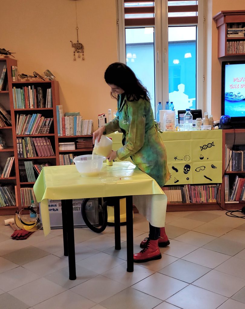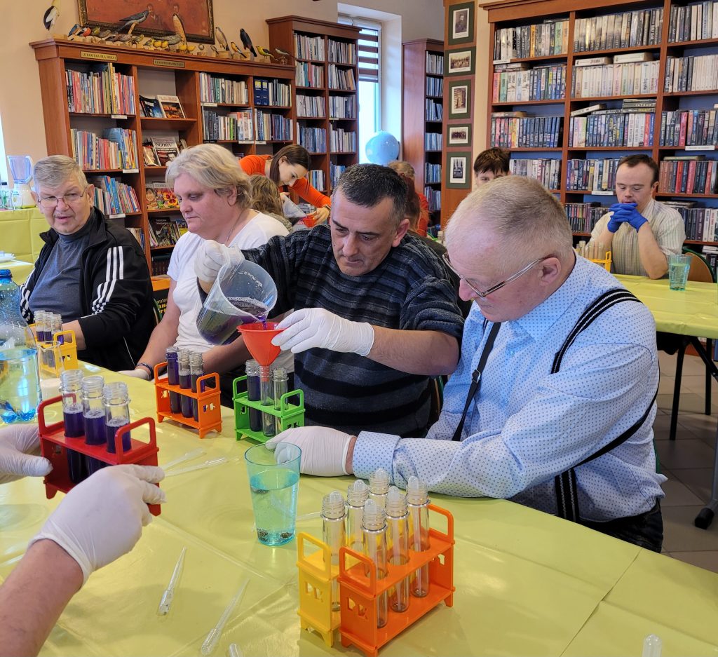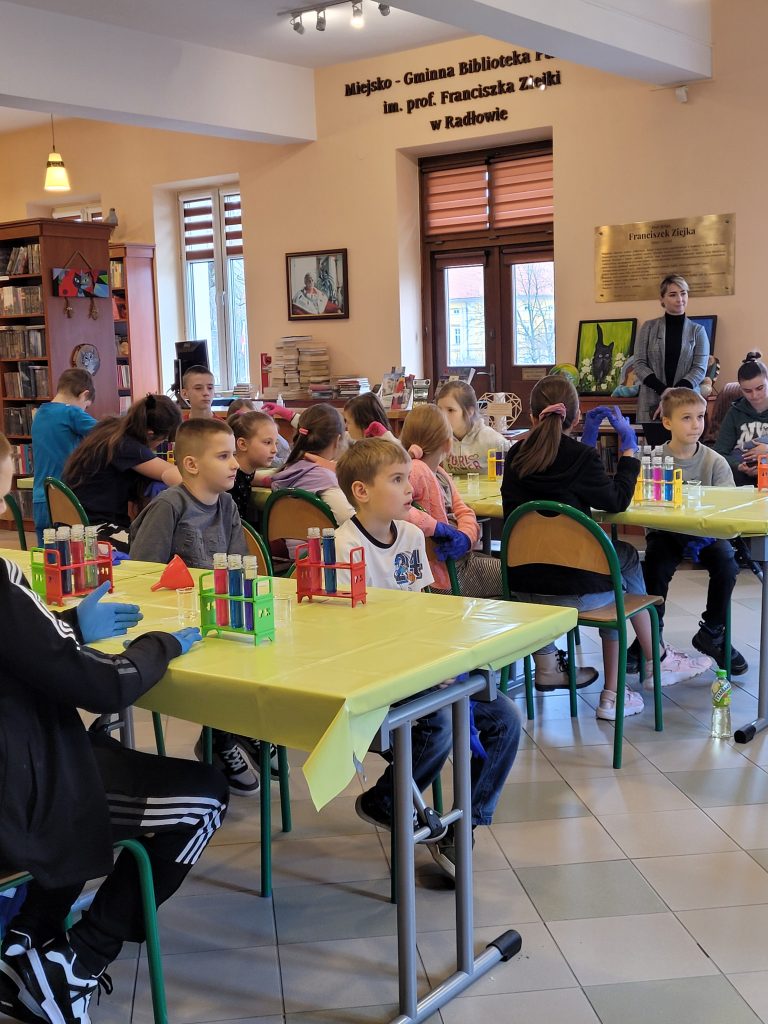 Wybuchowo i ekscytująco zakończyły się ferie 23 lutego w radłowskiej bibliotece, a to za sprawą naukowców z „Laboratorium Pana Korka”, którzy pod taką nazwą przygotowali wyjątkowe warsztaty. Pani Agnieszka Jaworska i pan Michał Szydłowski nie po raz pierwszy gościli w naszych progach, ale kolejny raz udowodnili, że nauka nie musi być nudna, za to może być pasjonująca, wybuchowa i wystrzałowa- dosłownie. A służyć do tego mogą tak zwyczajne, kuchenne produkty, jak ocet, soda, olej czy mąka ziemniaczana.