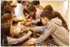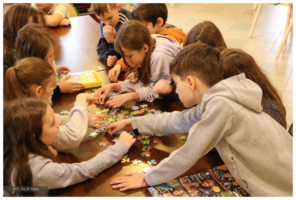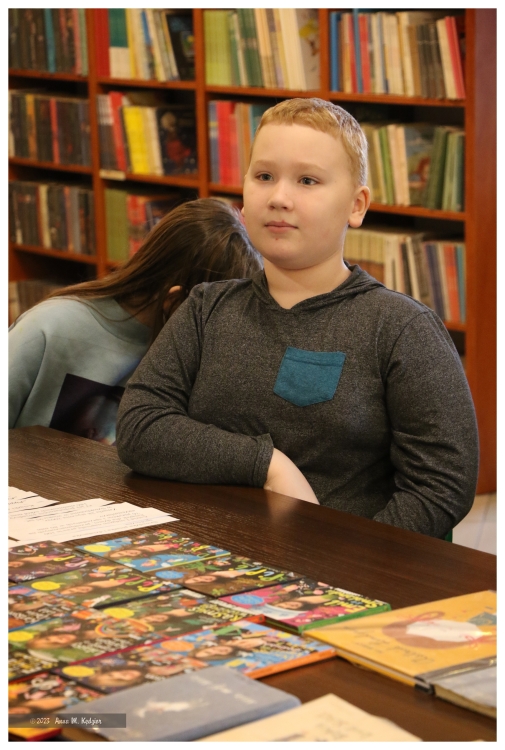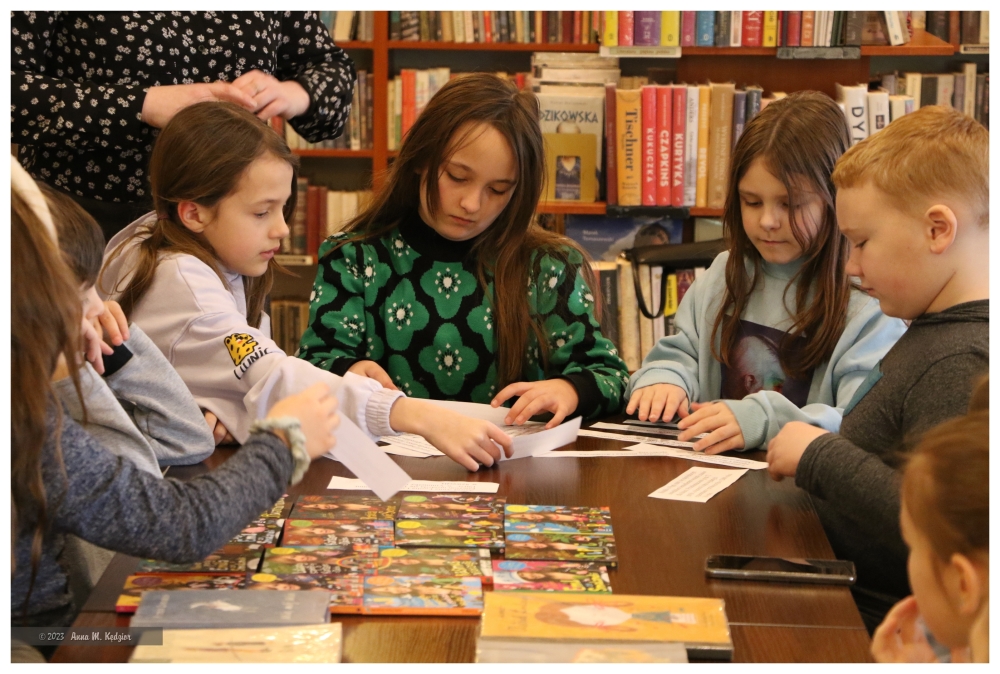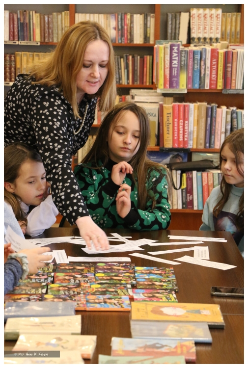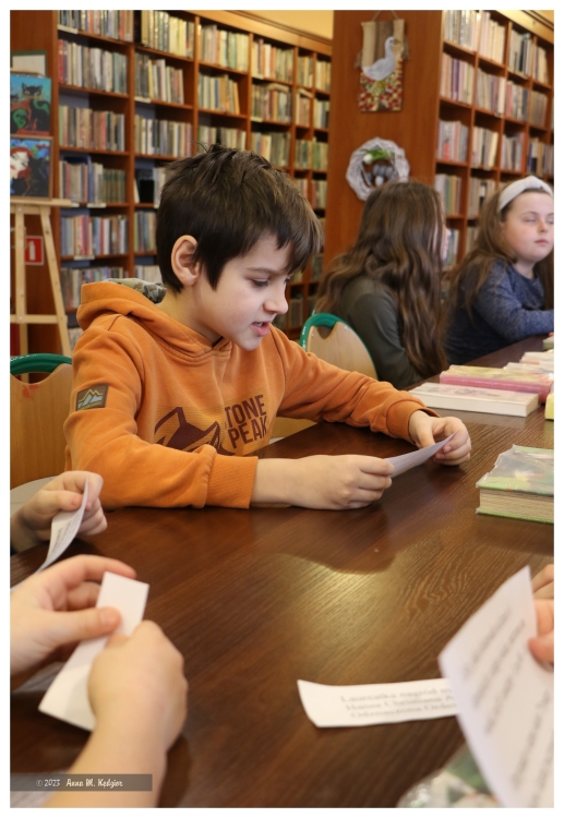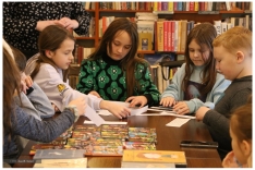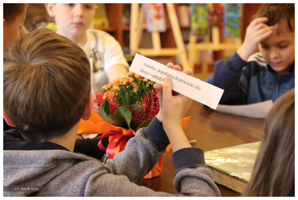 Zaskoczenie malujące się na twarzach szybko przeszło w radość i uśmiech gdyż dzieci bezbłędnie rozpoznały książkowych bohaterów. Z przygotowanych informacji uczniowie odtworzyli życiorys tej niezwykle popularnej autorki książek dla dzieci i młodzieży.
