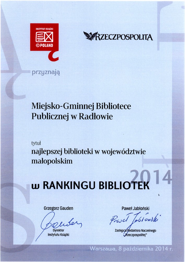 W radłowskiej książnicy gościli m.in.: prof. Franciszek Ziejka, prof. Leszek Mikulski, prof. Władysław Kędzior, prof. Edward Mleczko, Prokurator Generalny Andrzej Seremet, poeta Józef Baran, Jan Budziaszek (zespół Skaldowie), Janusz Korwin – Mikke, Ewa Chotomska, Wioletta Piasecka, Alicja Tanew (Piwnica pod Baranami), Beata Ostrowicka, Ewa Stadmüller, generał Józef Nasiadka, Katarzyna Żak, Anna Dymna, Ewa Wachowicz oraz gwiazdy polskiej estrady: Robert Janowski, Marek Piekarczyk, Wojtek Klich, Oddział Zamknięty i Paweł Kukiz z zespołem Piersi.